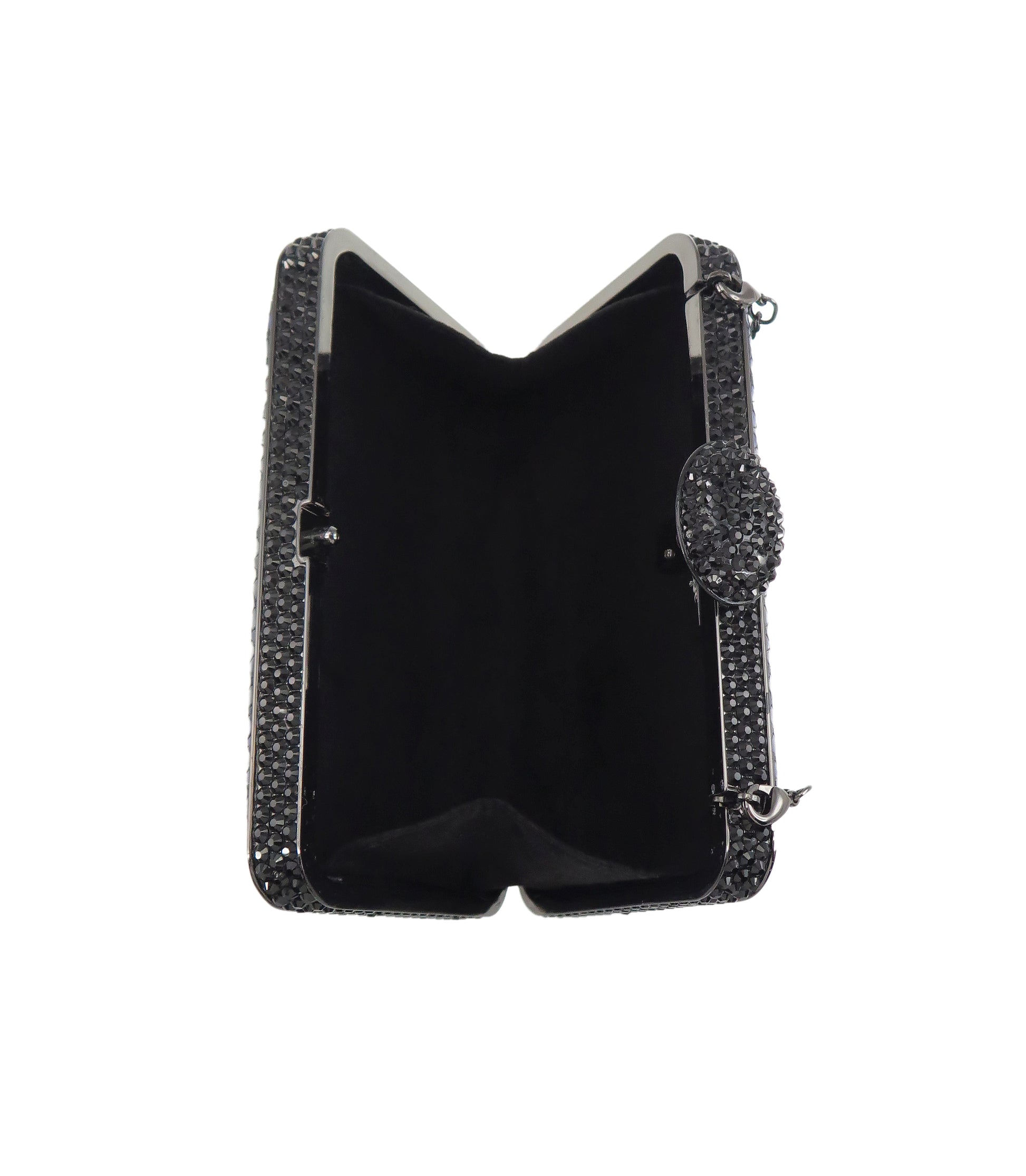 Exquisitely designed and hand crafted full grain leather bags encrusted with Swarovski crystals. Carry it in the palm of your hand or sling it over your shoulder with the included cross body chain.