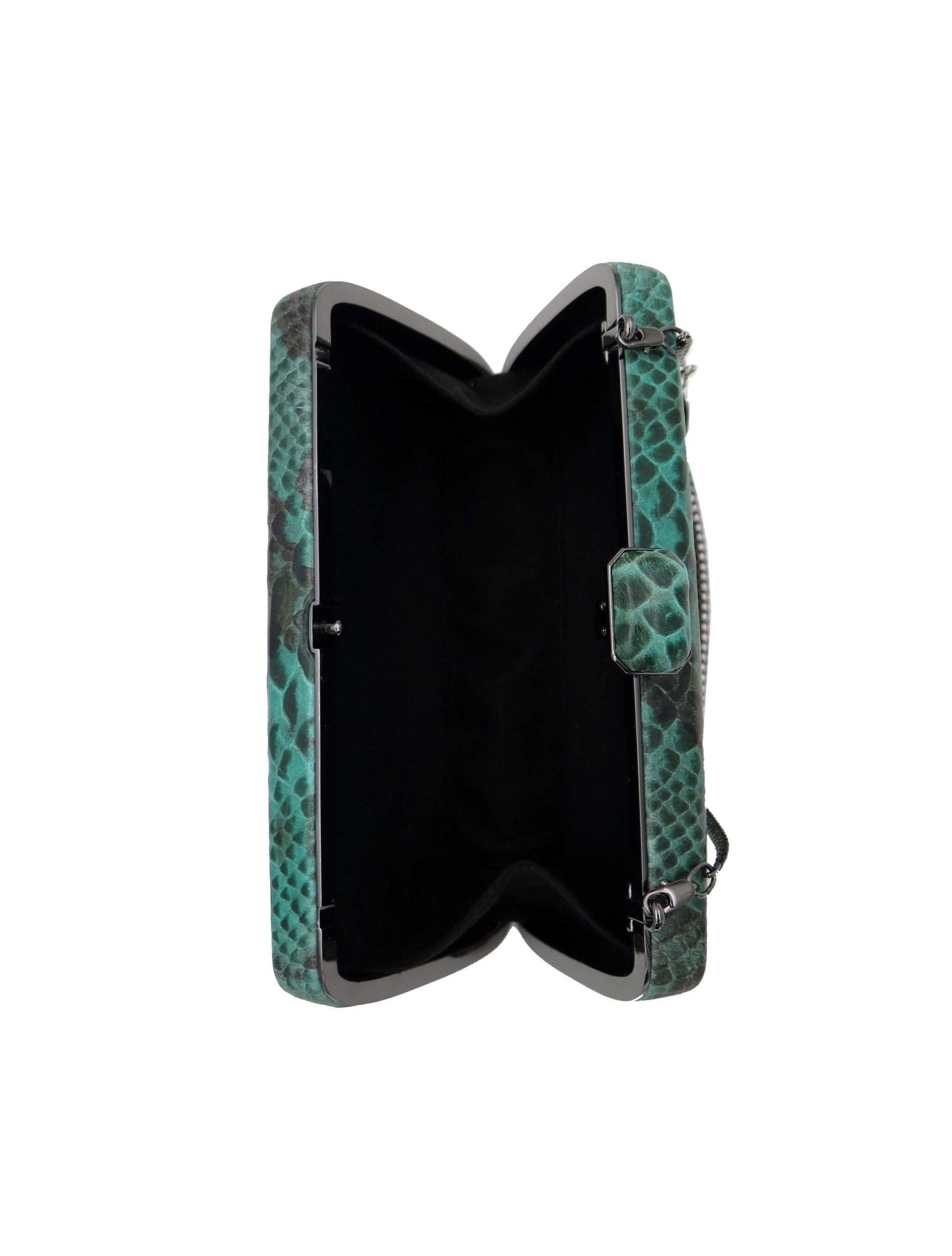Exquisitely designed and hand crafted full grain leather bags encrusted with Swarovski crystals. Carry it in the palm of your hand or sling it over your shoulder with the included cross body chain.