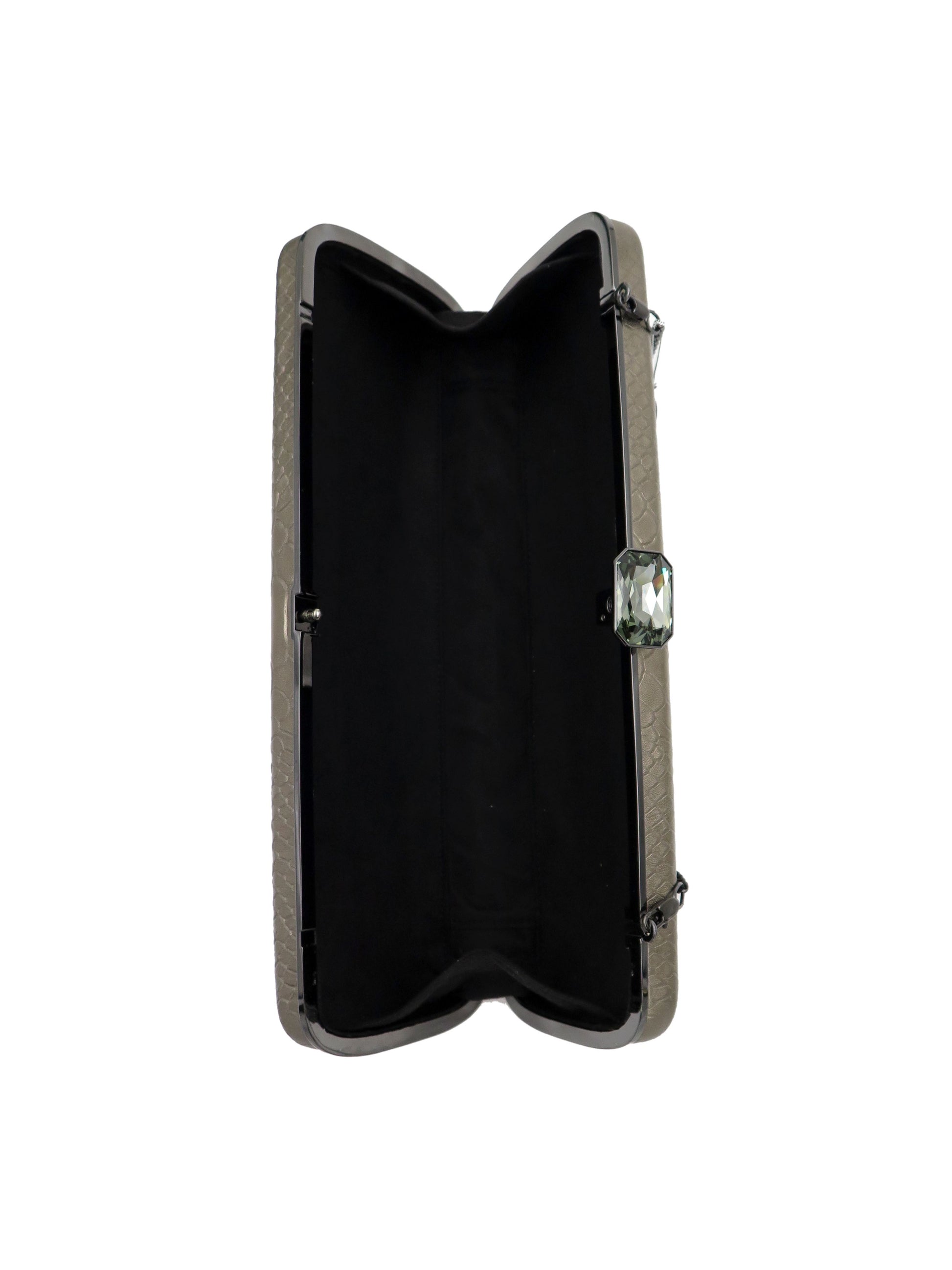 Exquisitely designed and hand crafted full grain leather bags encrusted with Swarovski crystals. Carry it in the palm of your hand or sling it over your shoulder with the included cross body chain.