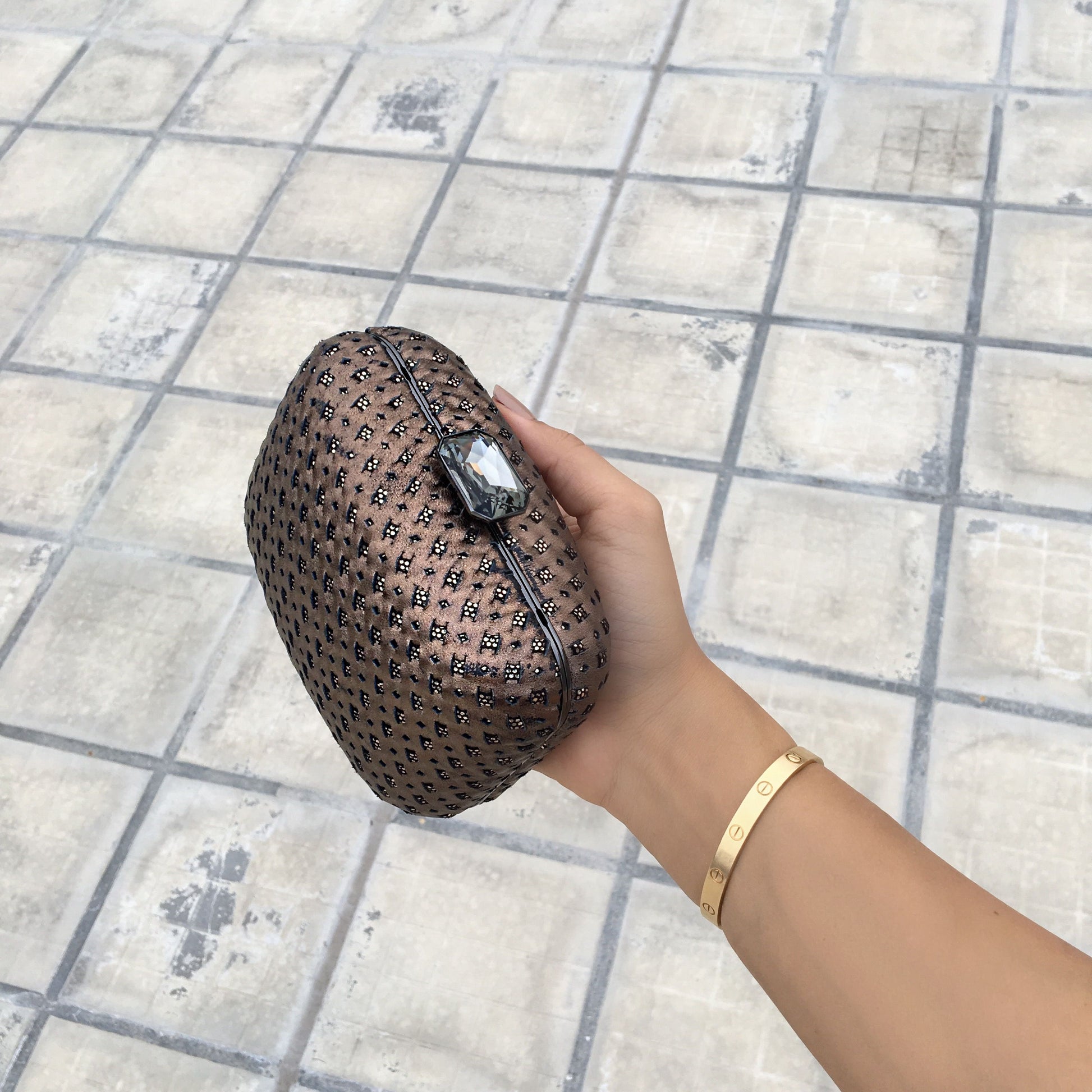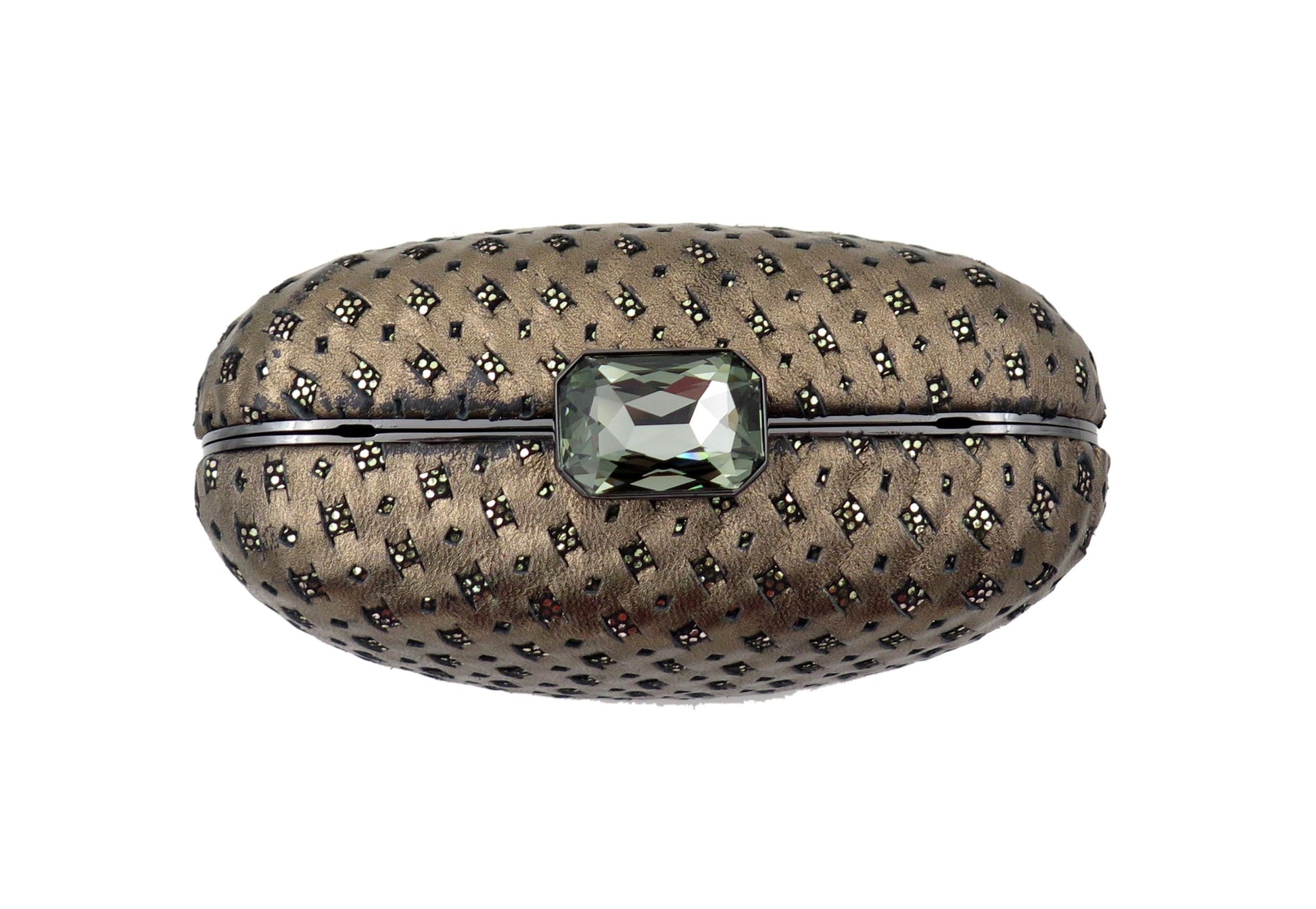 Exquisitely designed and hand crafted full grain leather bags encrusted with Swarovski crystals. Carry it in the palm of your hand or sling it over your shoulder with the included cross body chain.