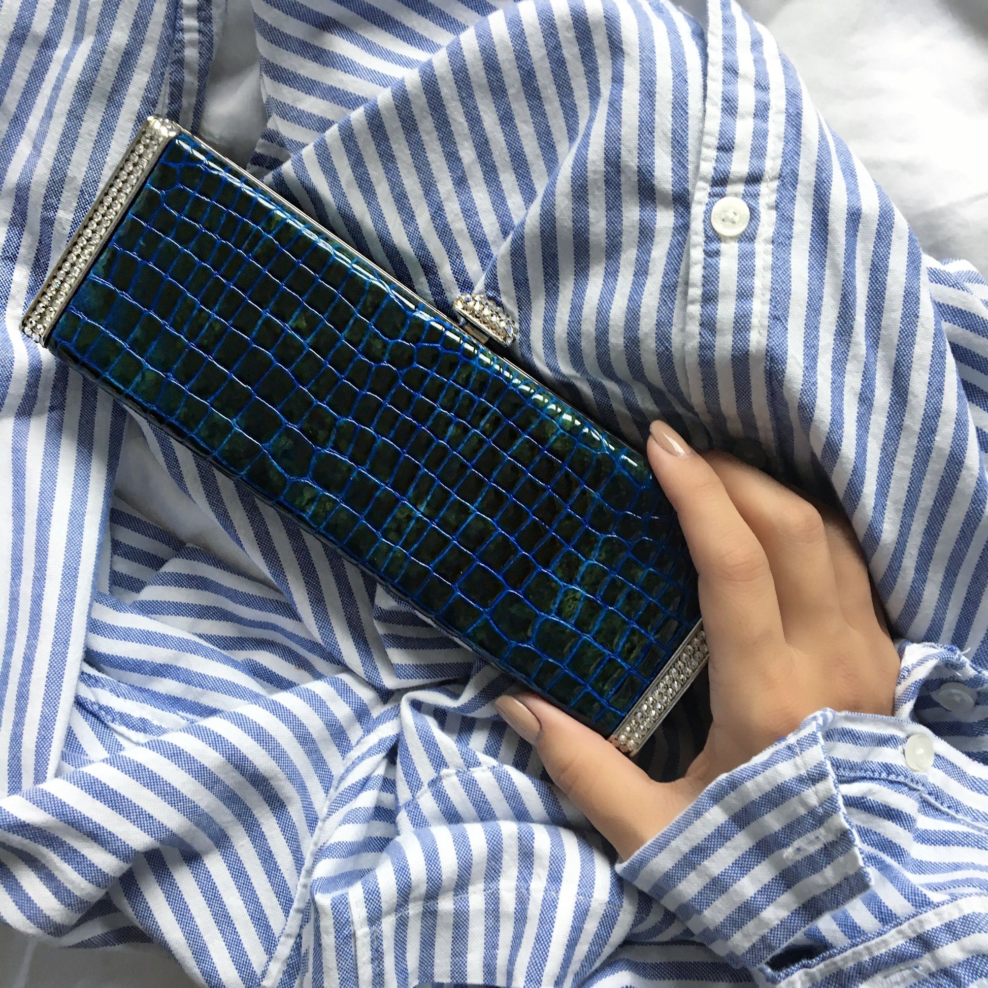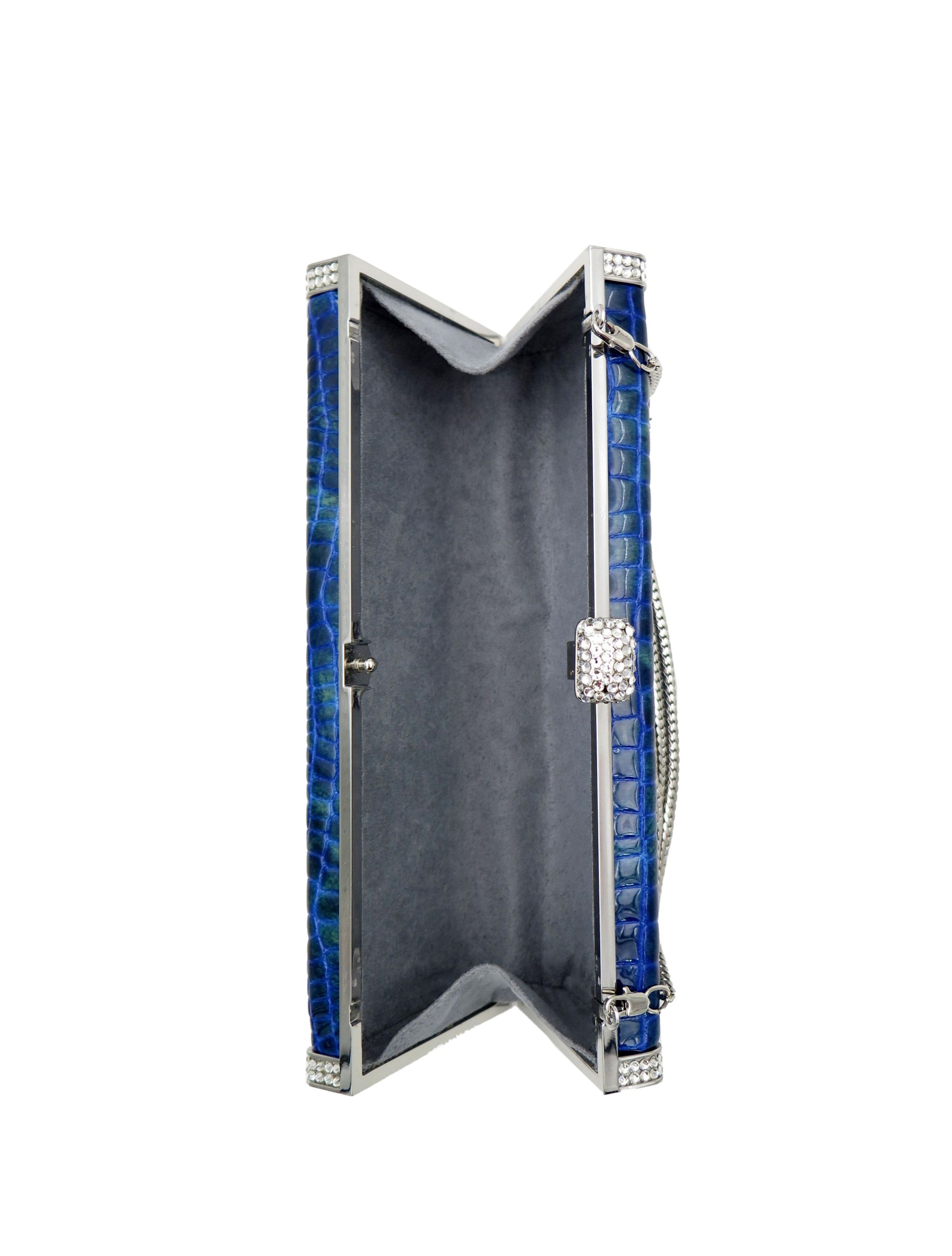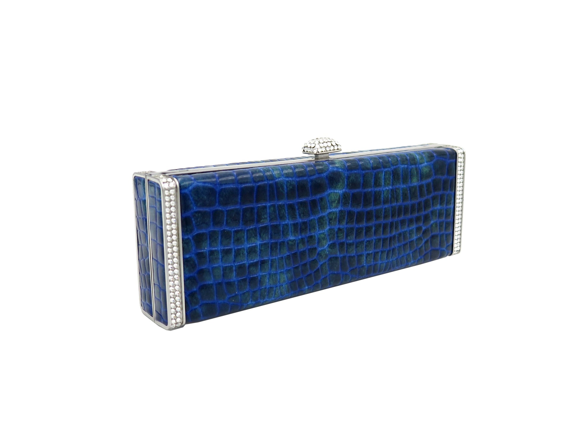 Exquisitely designed and hand crafted full grain leather bags encrusted with Swarovski crystals. Carry it in the palm of your hand or sling it over your shoulder with the included cross body chain.
