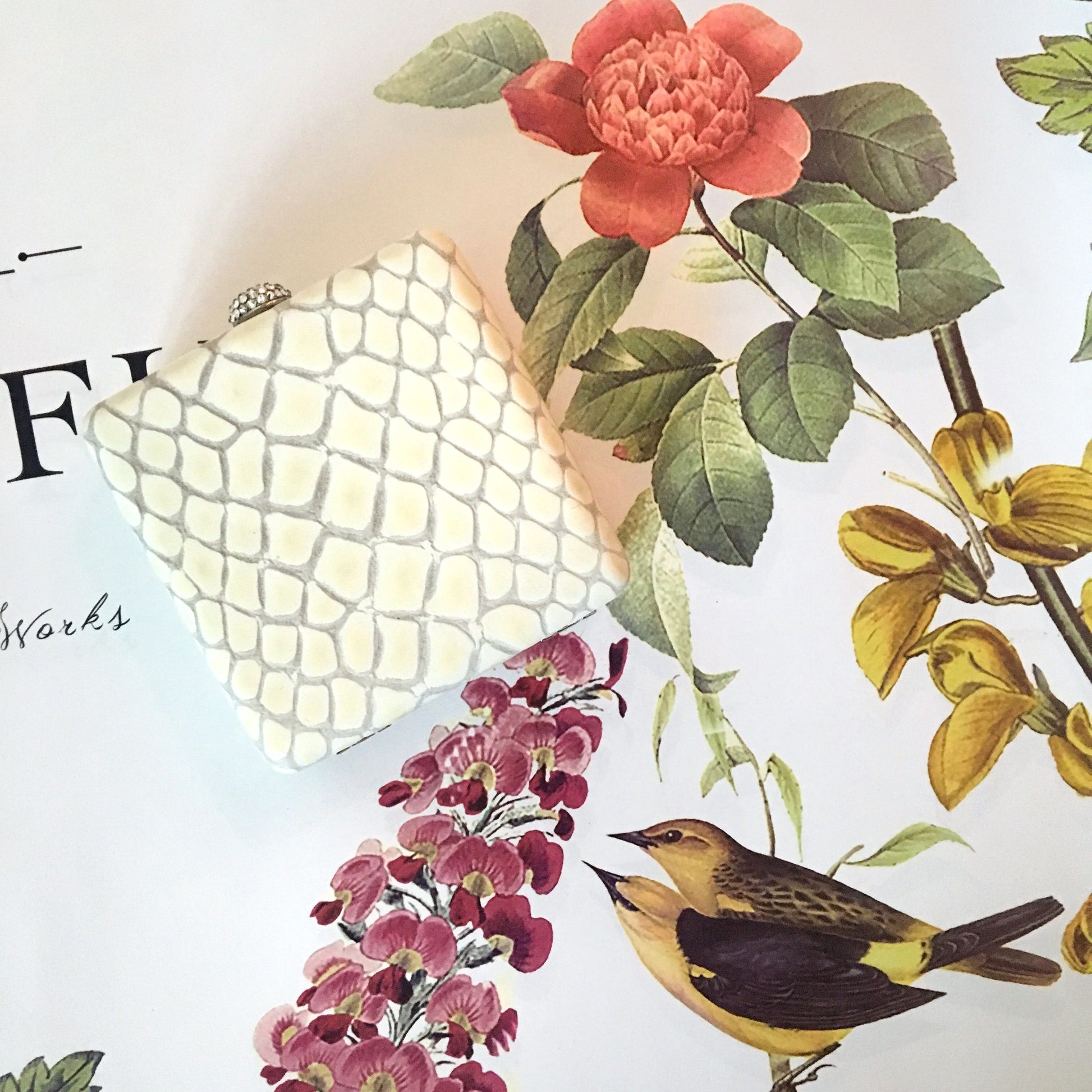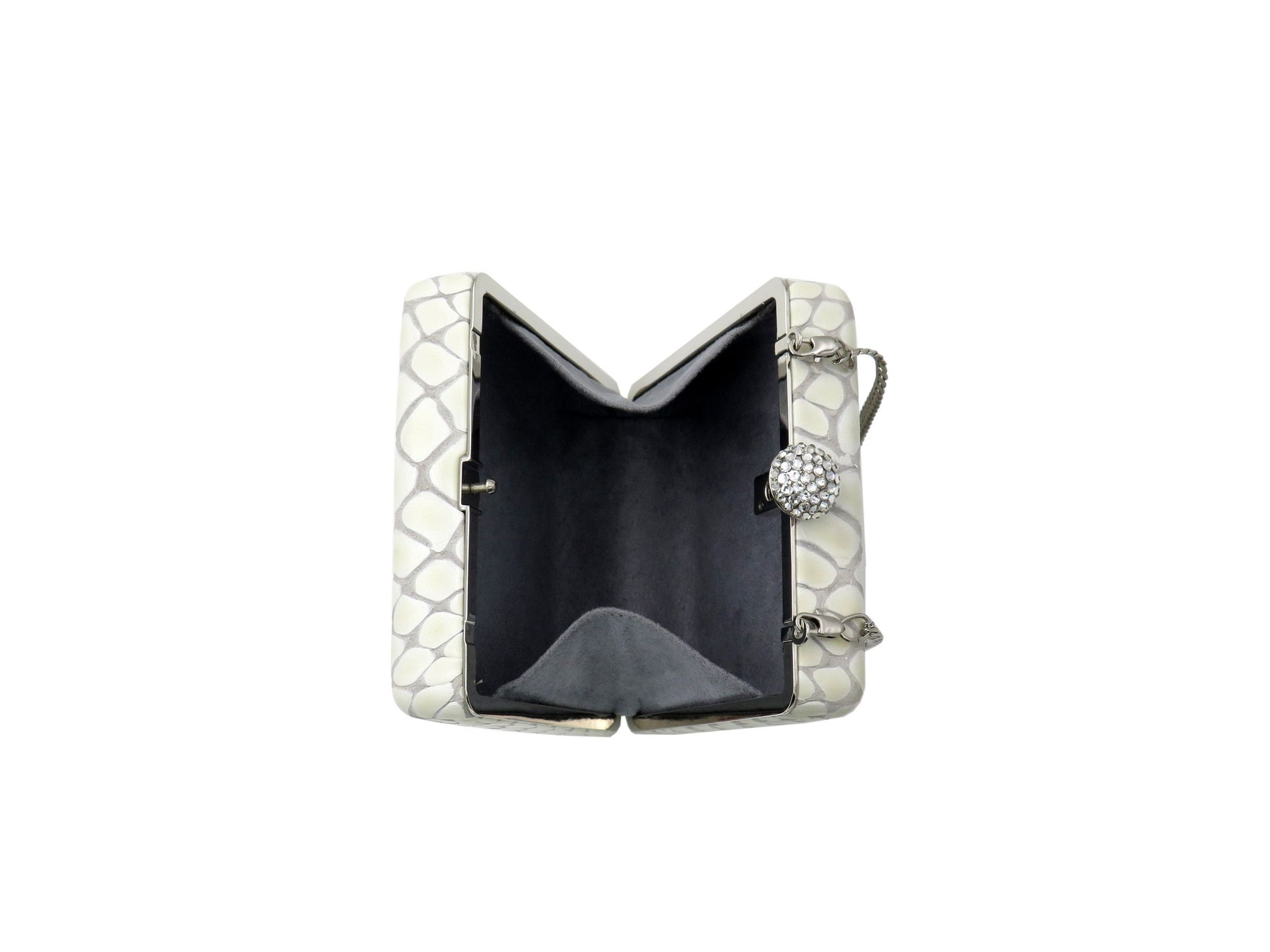 Exquisitely designed and hand crafted full grain leather bags encrusted with Swarovski crystals. Carry it in the palm of your hand or sling it over your shoulder with the included cross body chain.