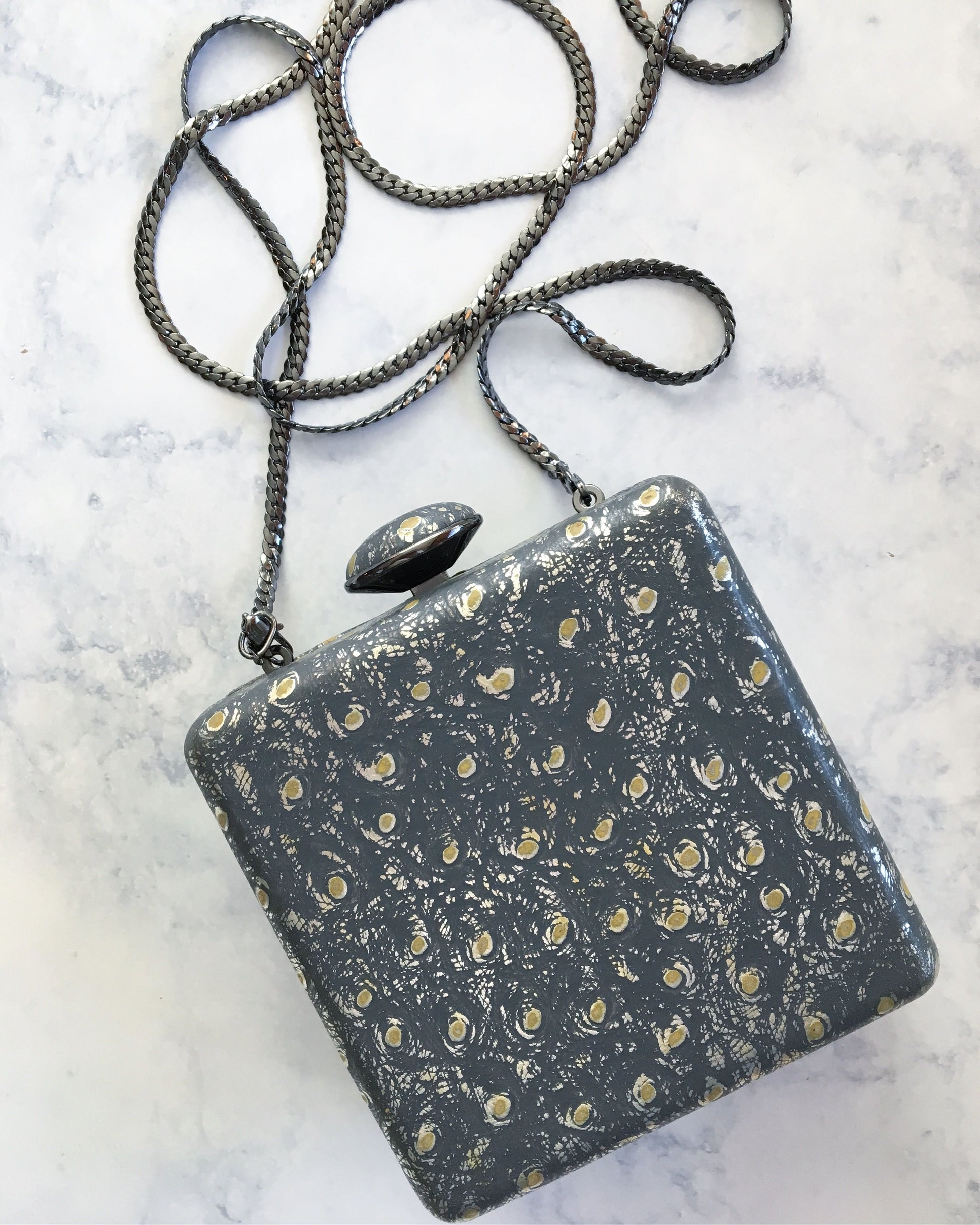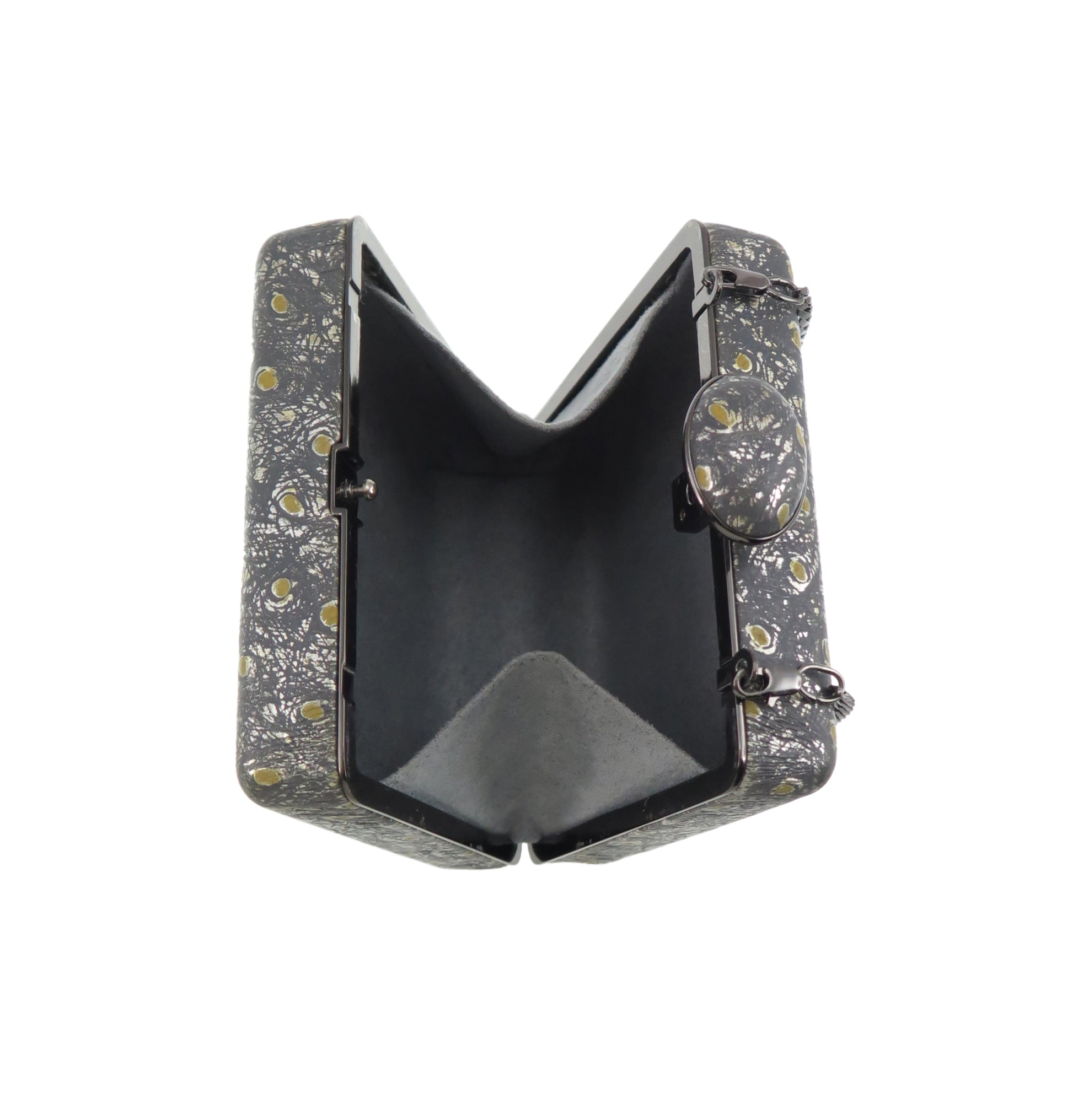 Exquisitely designed and hand crafted full grain leather bags encrusted with Swarovski crystals. Carry it in the palm of your hand or sling it over your shoulder with the included cross body chain.
