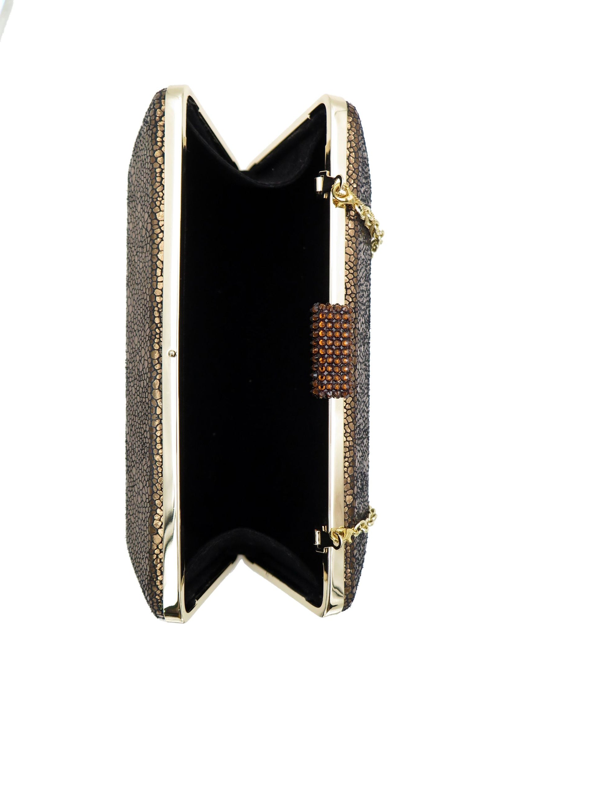 Exquisitely designed and hand crafted full grain leather bags encrusted with Swarovski crystals. Carry it in the palm of your hand or sling it over your shoulder with the included cross body chain.