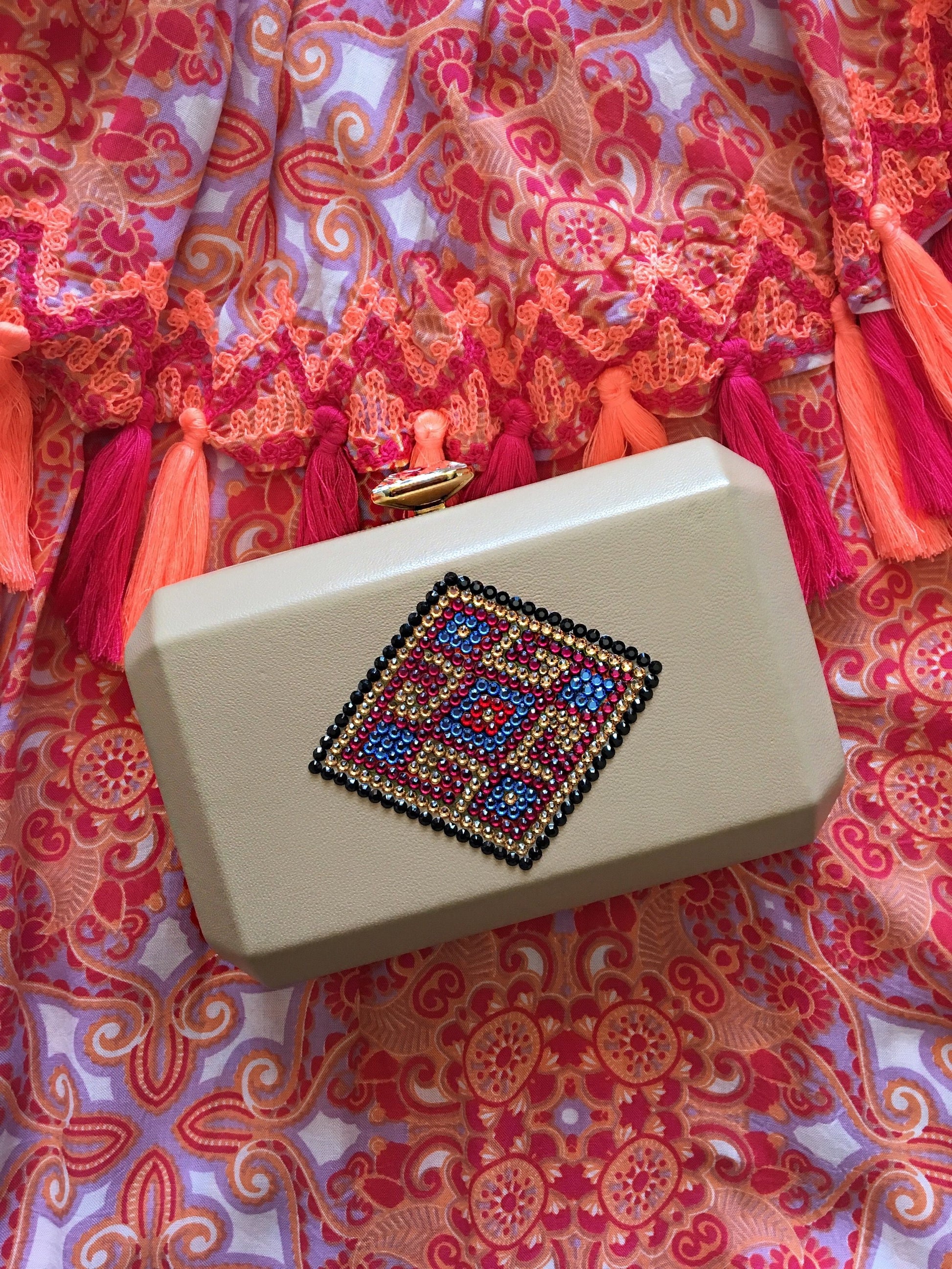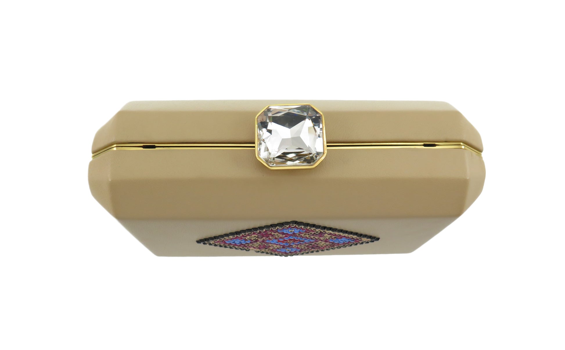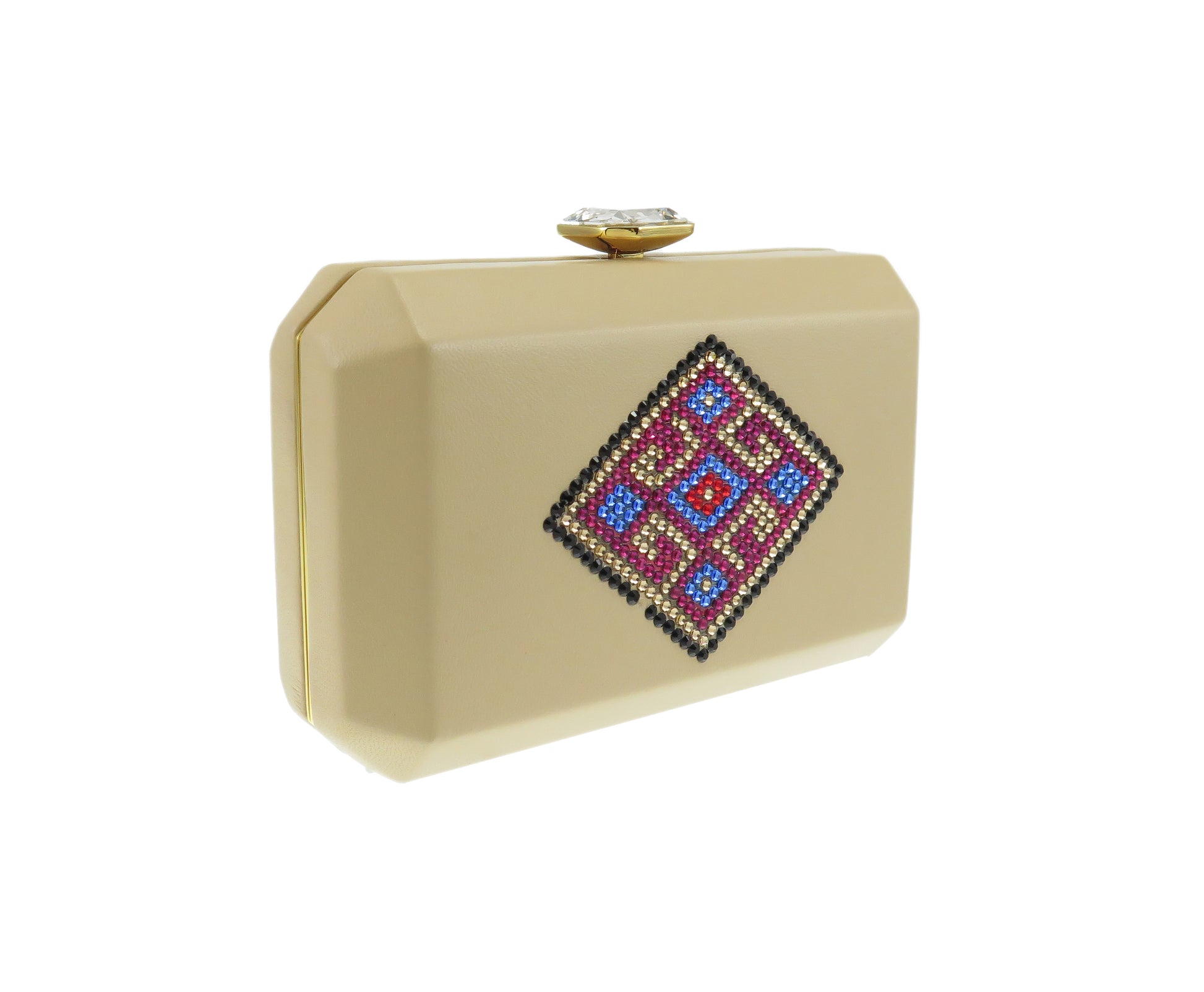 Exquisitely designed and hand crafted full grain leather bags encrusted with Swarovski crystals. Carry it in the palm of your hand or sling it over your shoulder with the included cross body chain.