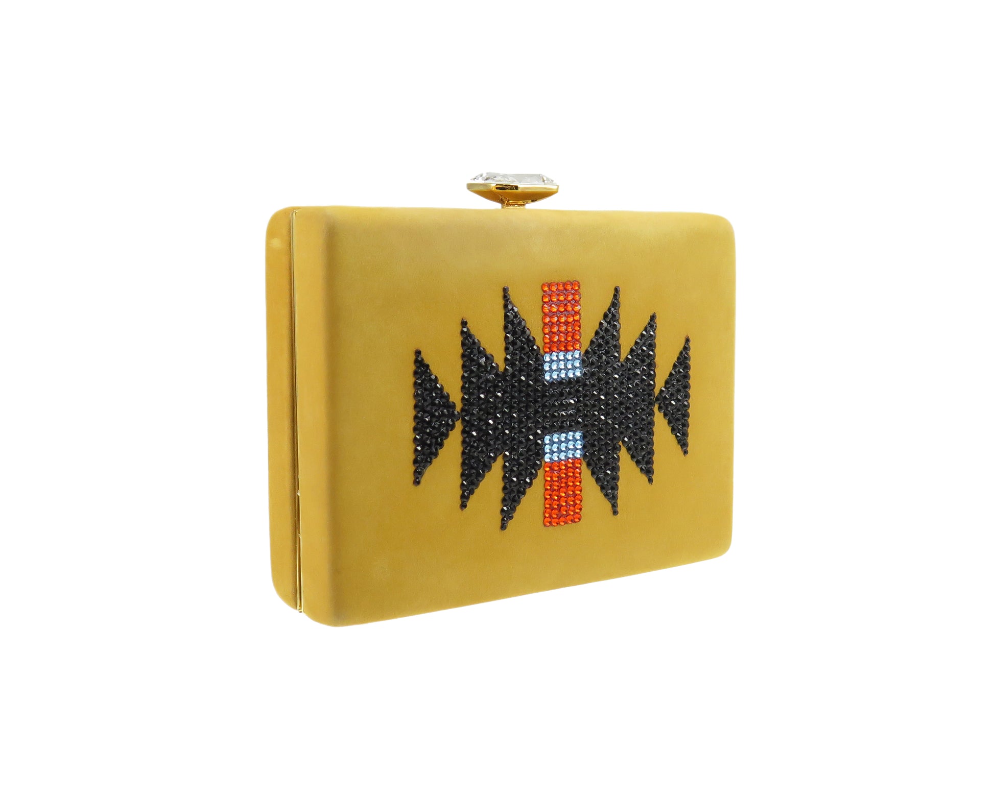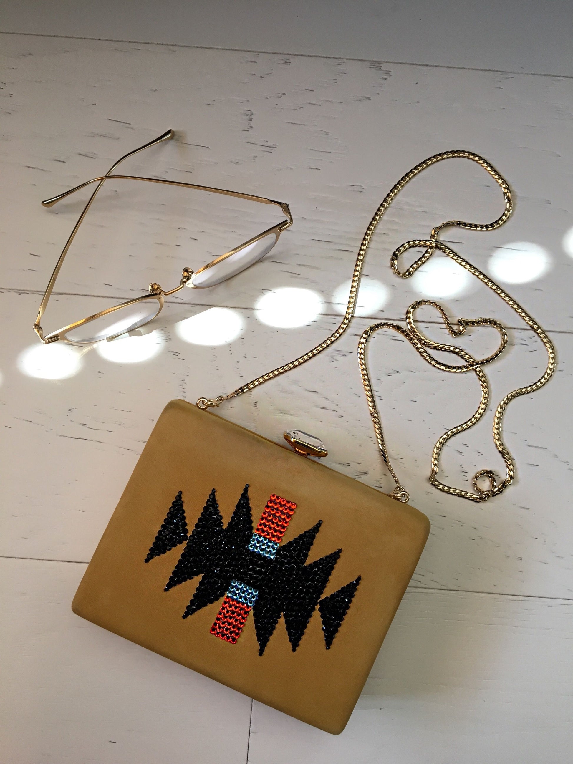 Exquisitely designed and hand crafted full grain leather bags encrusted with Swarovski crystals. Carry it in the palm of your hand or sling it over your shoulder with the included cross body chain.