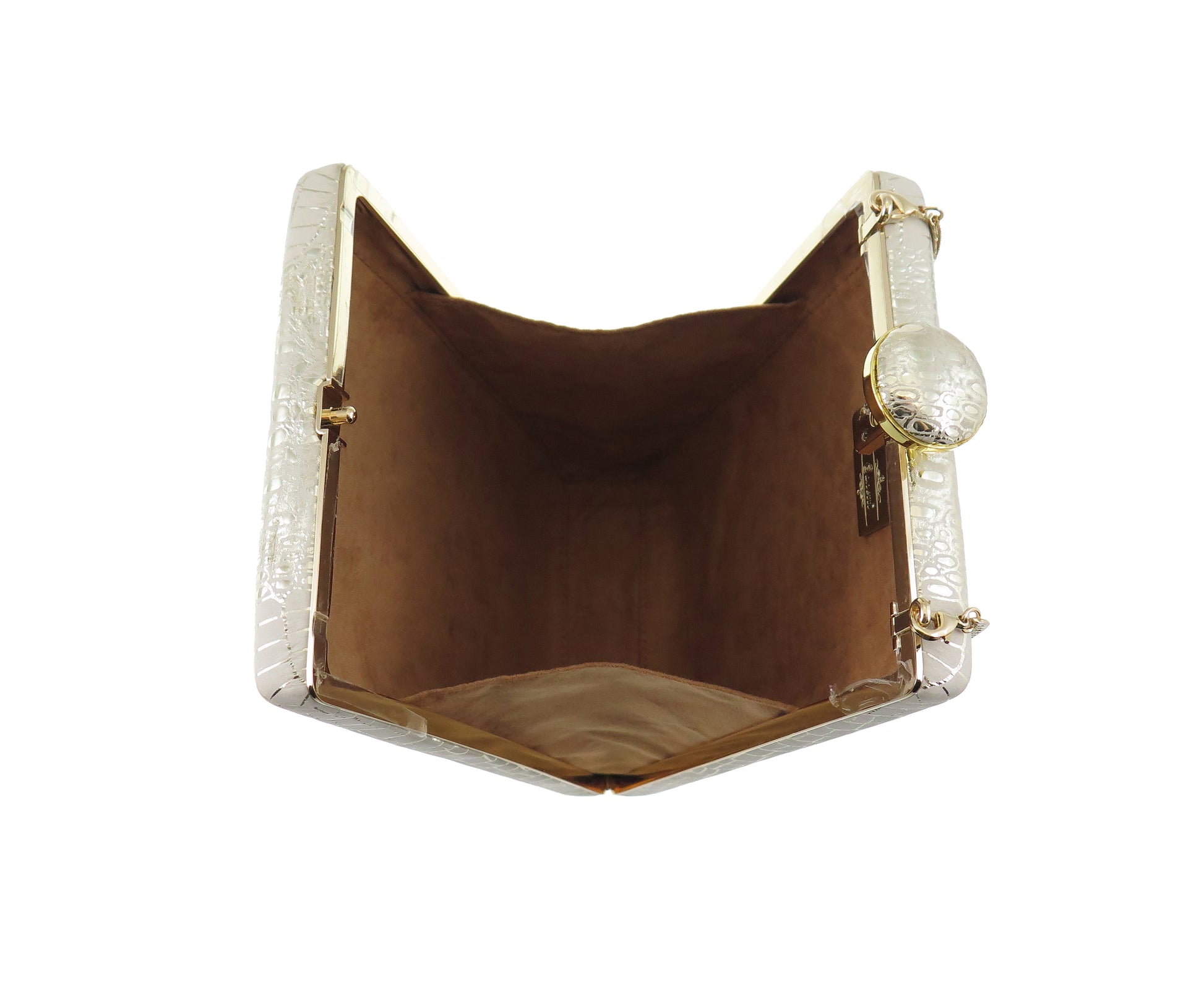 Exquisitely designed and hand crafted full grain leather bags encrusted with Swarovski crystals. Carry it in the palm of your hand or sling it over your shoulder with the included cross body chain.