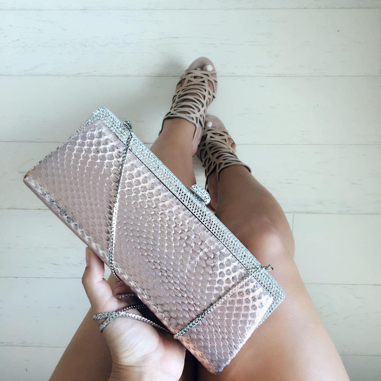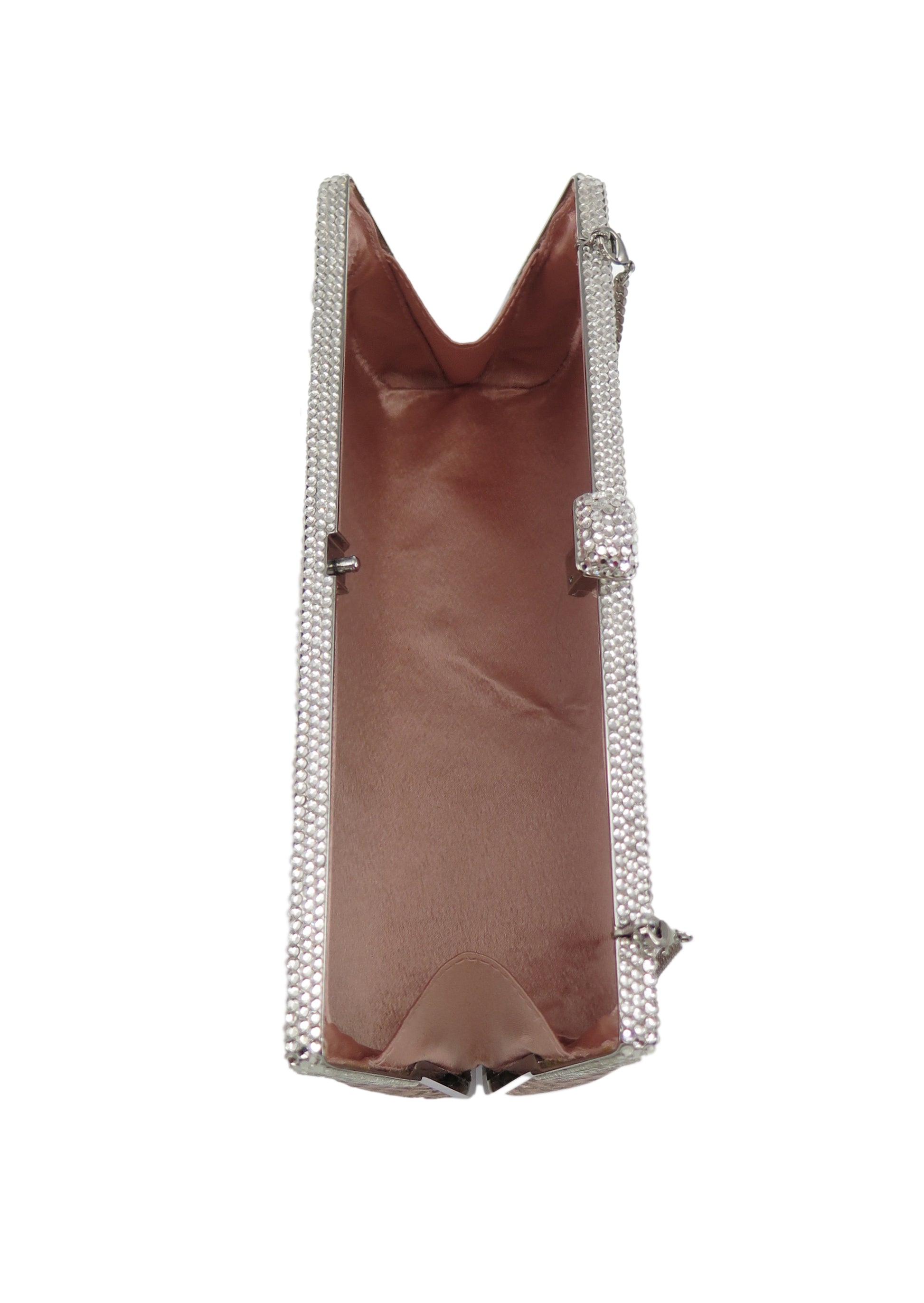 Exquisitely designed and hand crafted full grain leather bags encrusted with Swarovski crystals. Carry it in the palm of your hand or sling it over your shoulder with the included cross body chain.