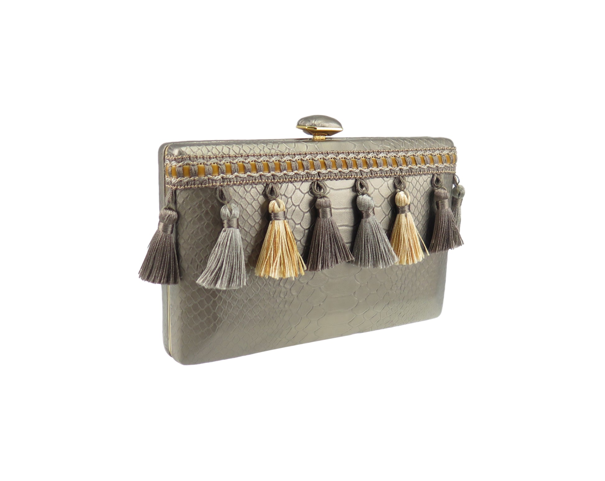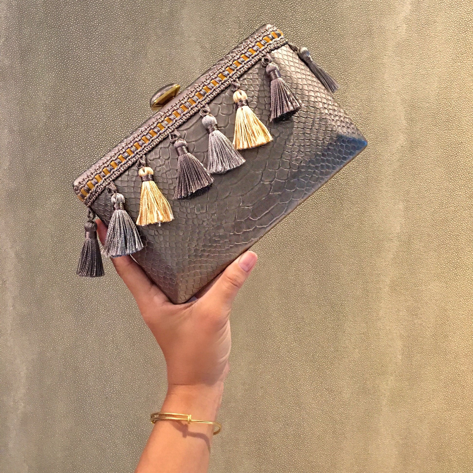 Exquisitely designed and hand crafted full grain leather bags encrusted with Swarovski crystals. Carry it in the palm of your hand or sling it over your shoulder with the included cross body chain.