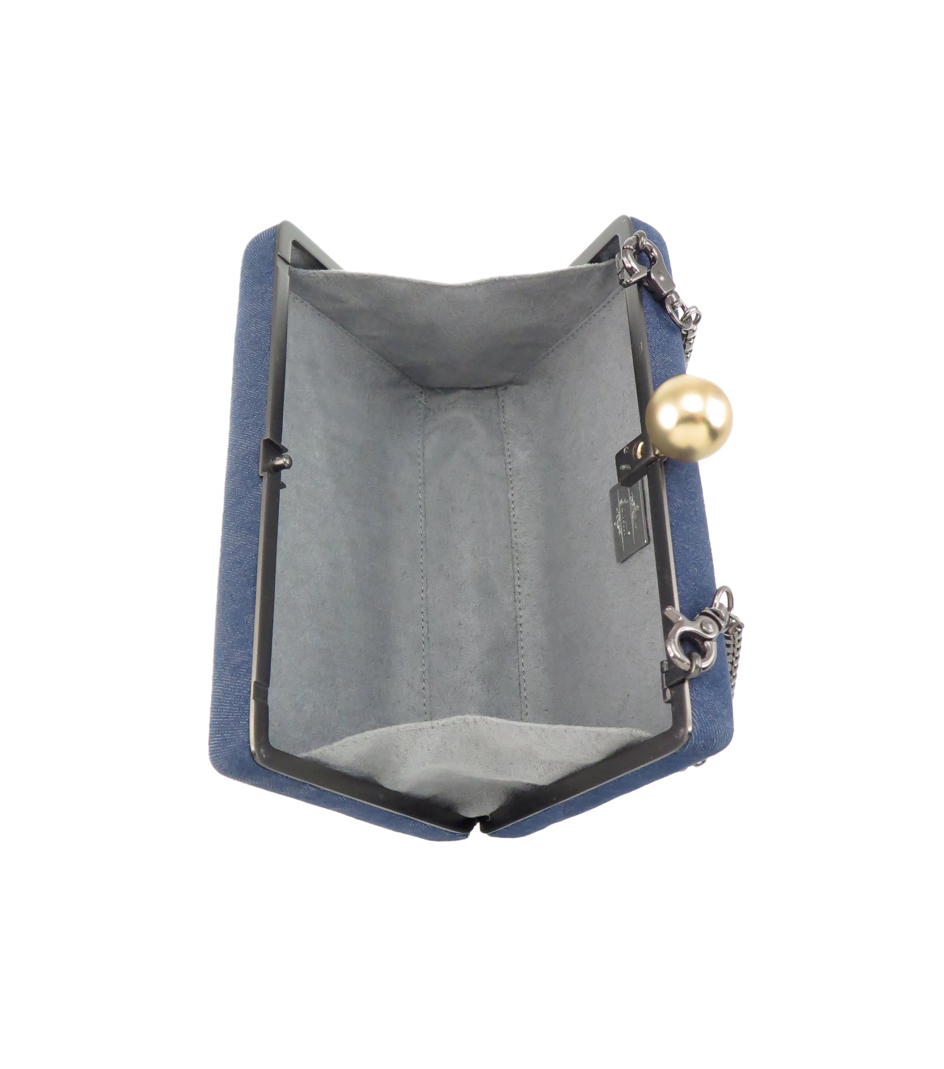 Handmade clutch bags with exquisite fabric coverings. Carry it in the palm of your hand or sling it over your shoulder with the included cross body chain.