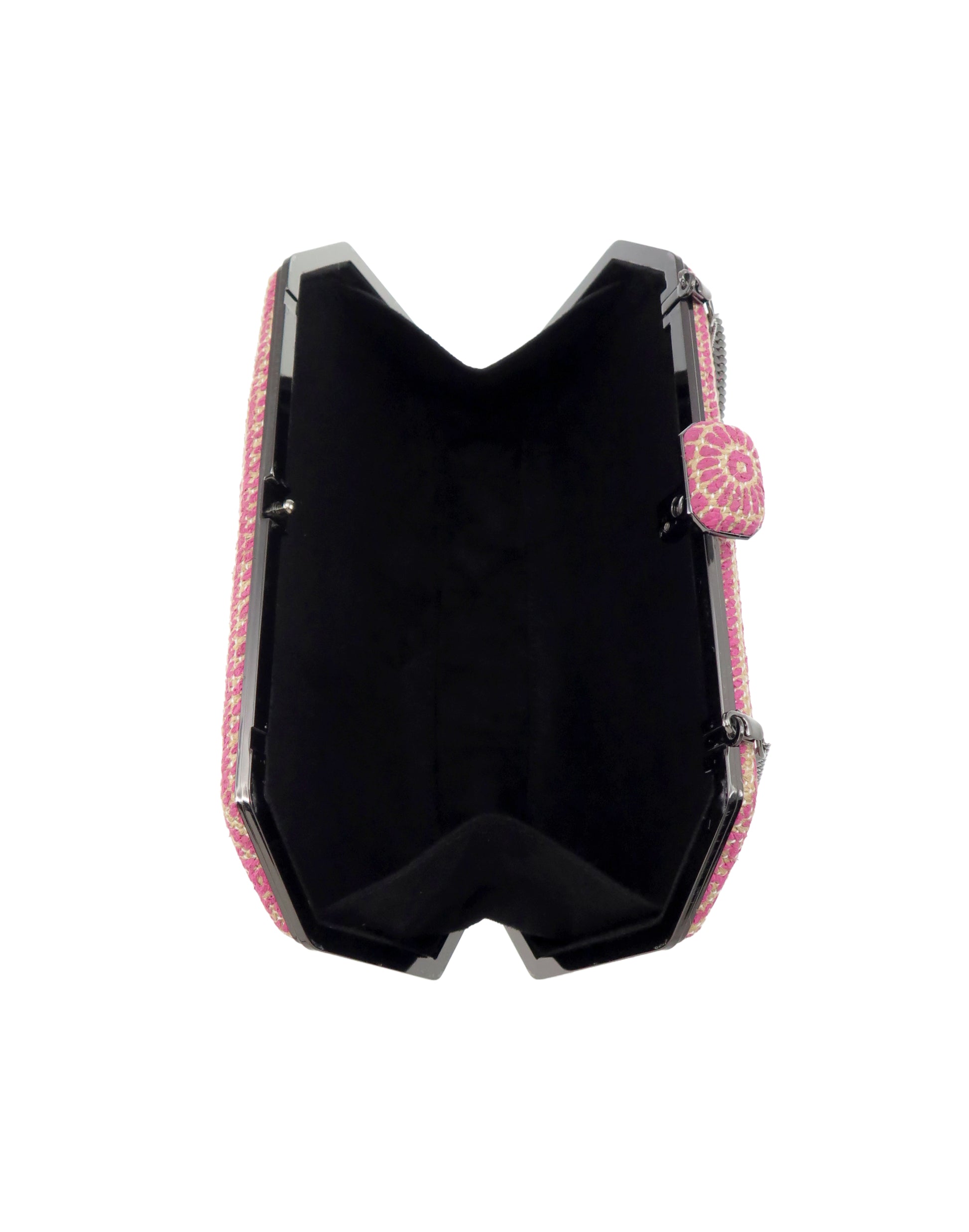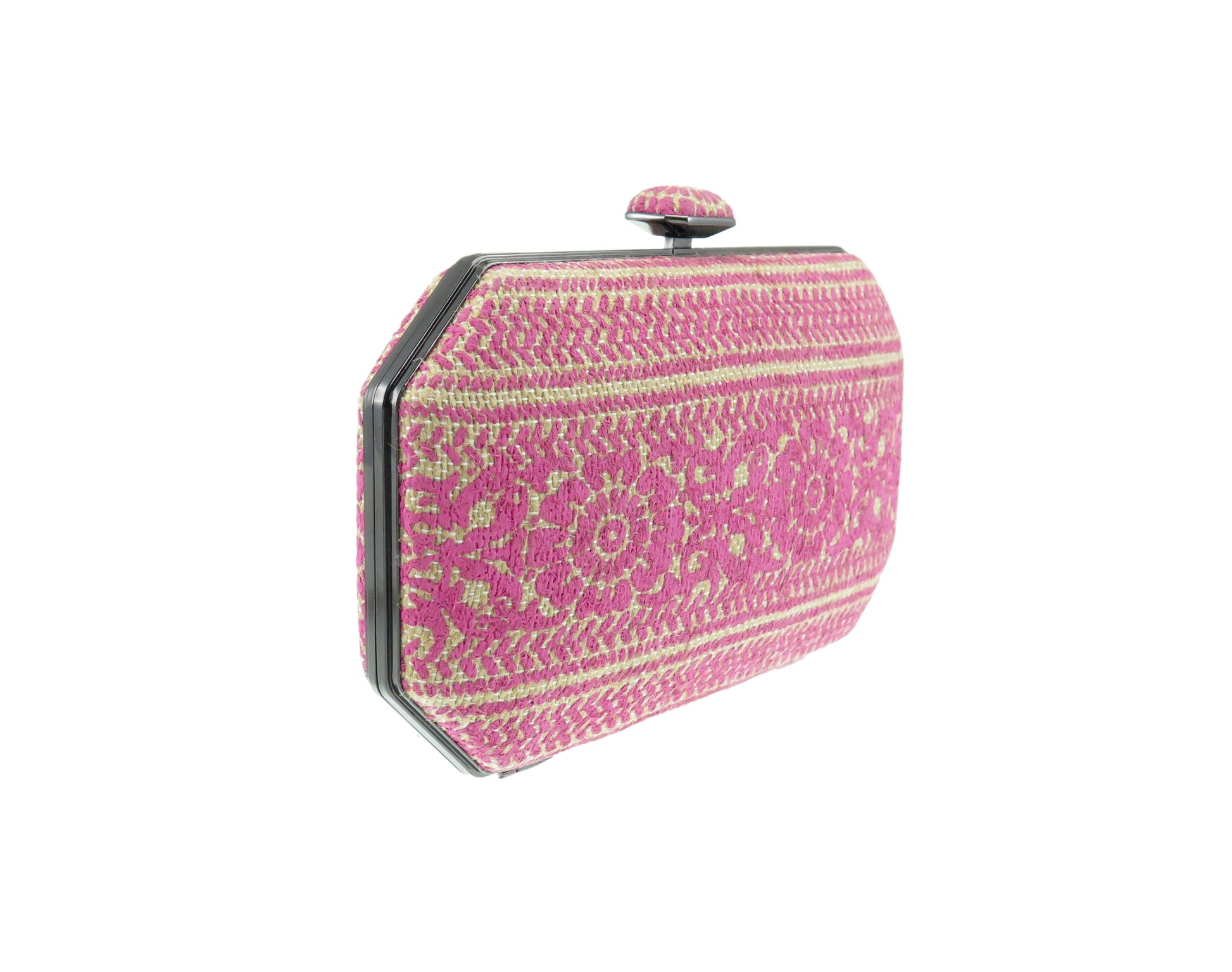 Handmade clutch bags with exquisite fabric coverings. Carry it in the palm of your hand or sling it over your shoulder with the included cross body chain.