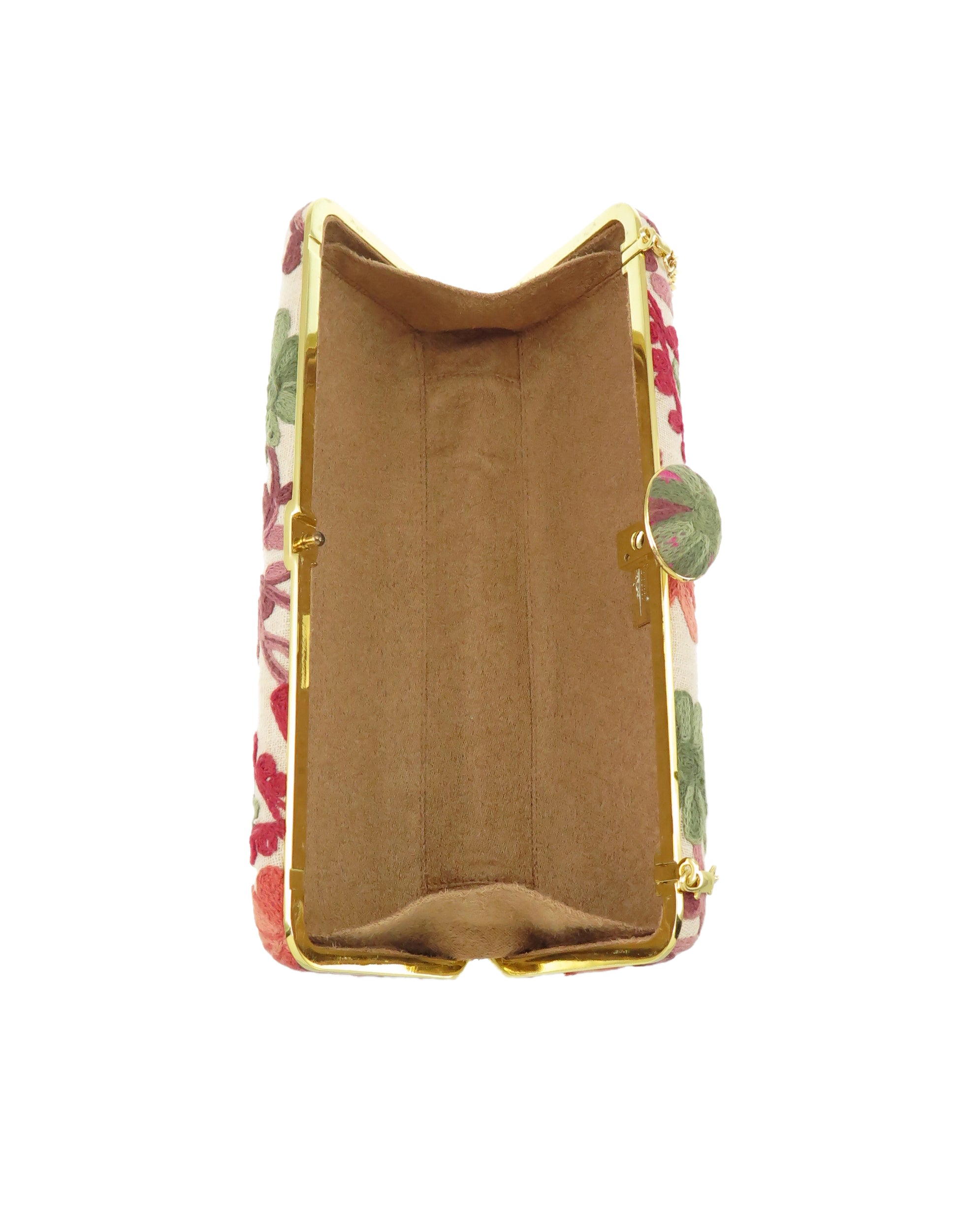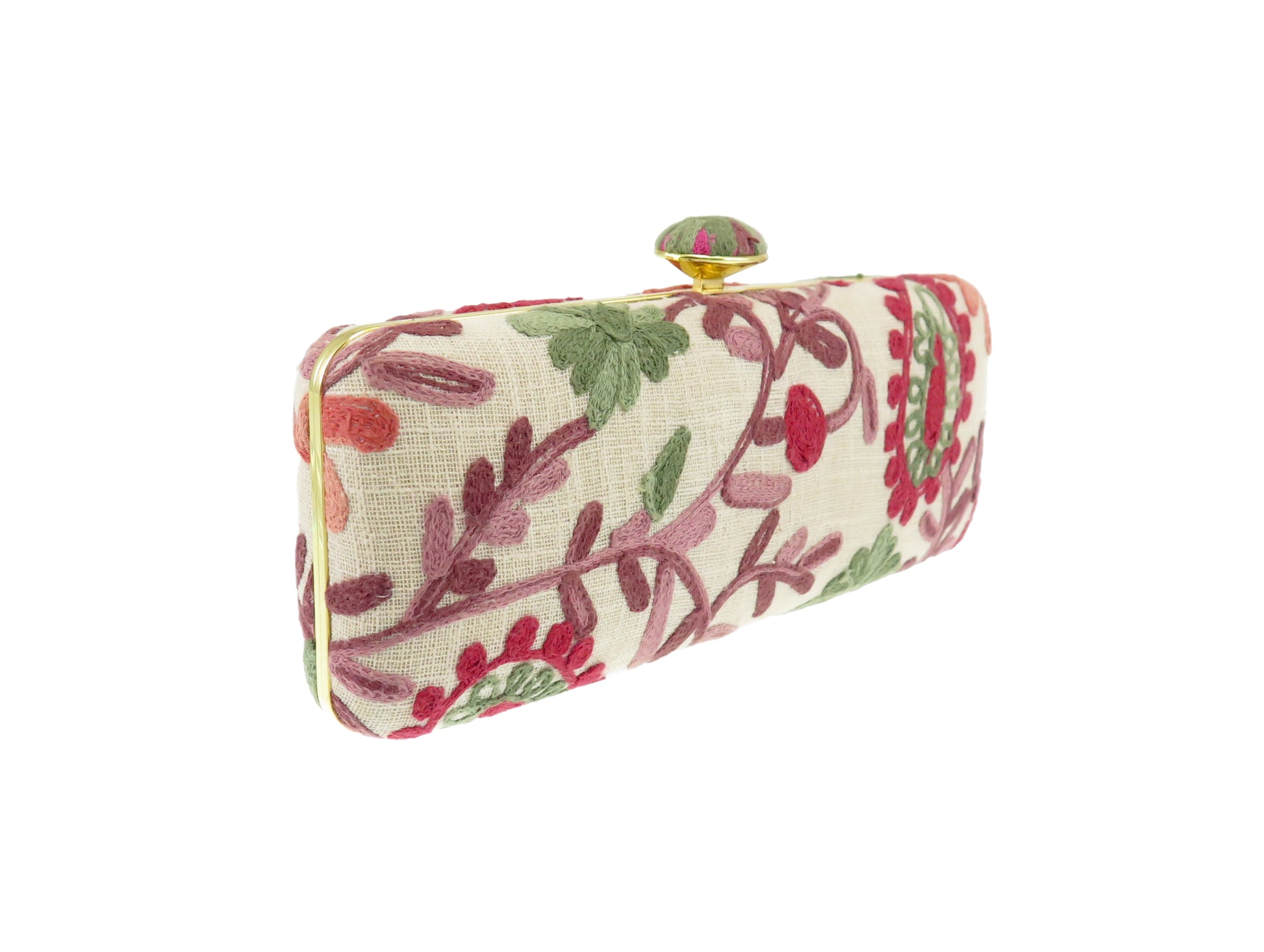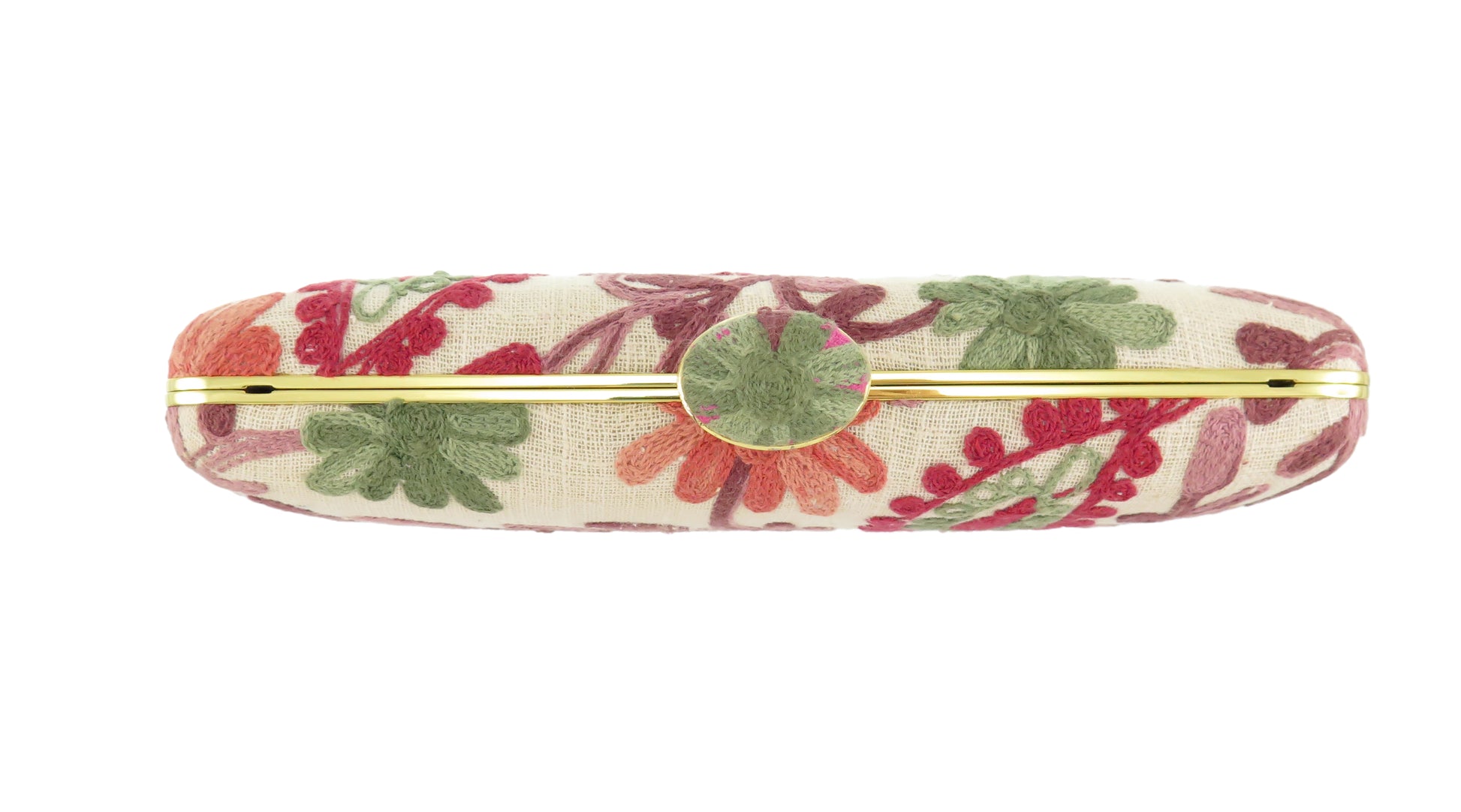 Handmade clutch bags with exquisite fabric coverings. Carry it in the palm of your hand or sling it over your shoulder with the included cross body chain.