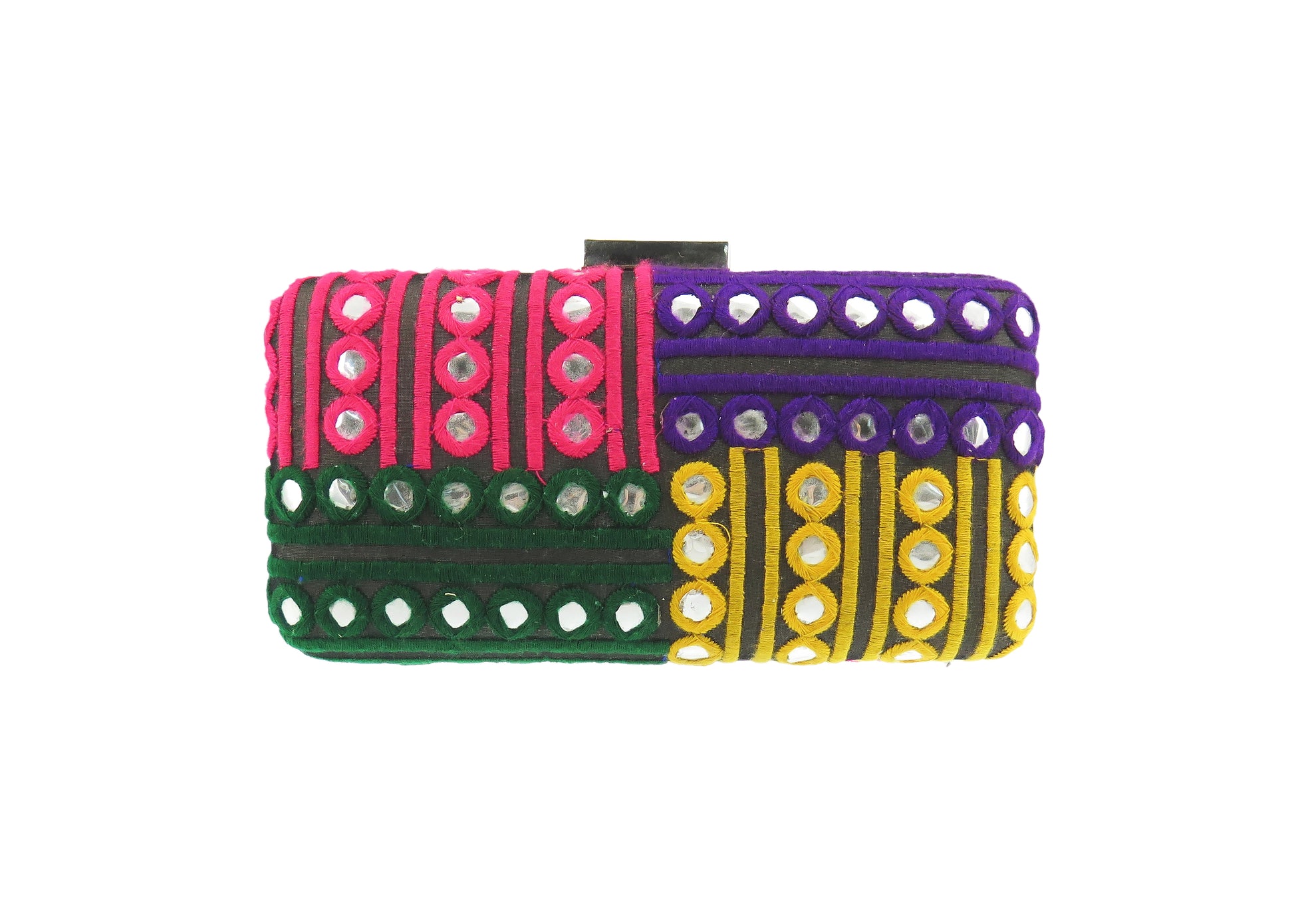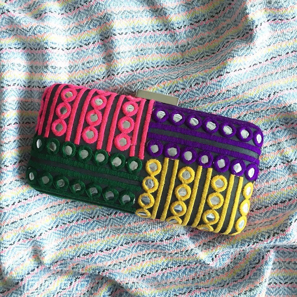 Handmade clutch bags with exquisite fabric coverings. Carry it in the palm of your hand or sling it over your shoulder with the included cross body chain.