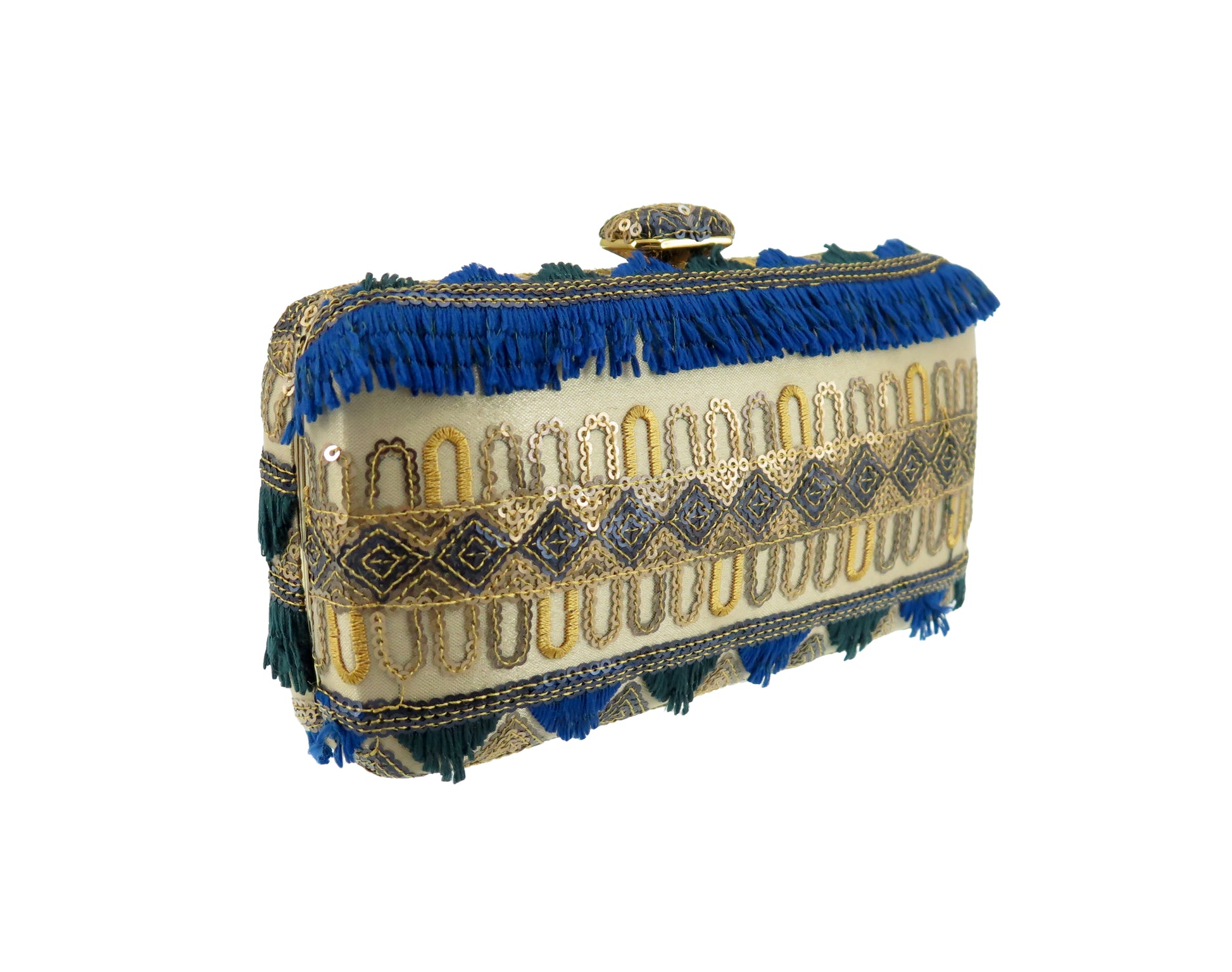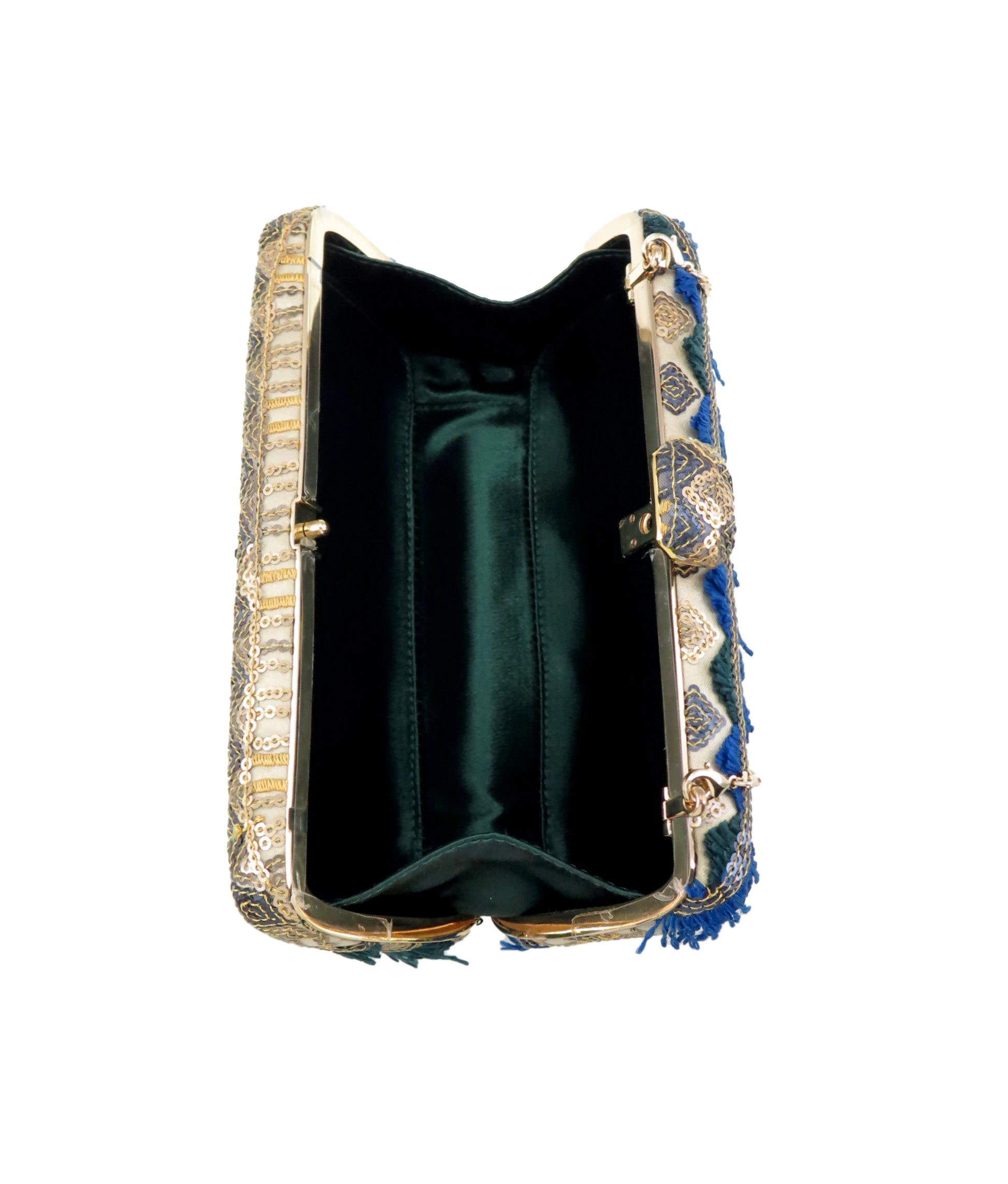 Handmade clutch bags with exquisite fabric coverings. Carry it in the palm of your hand or sling it over your shoulder with the included cross body chain.