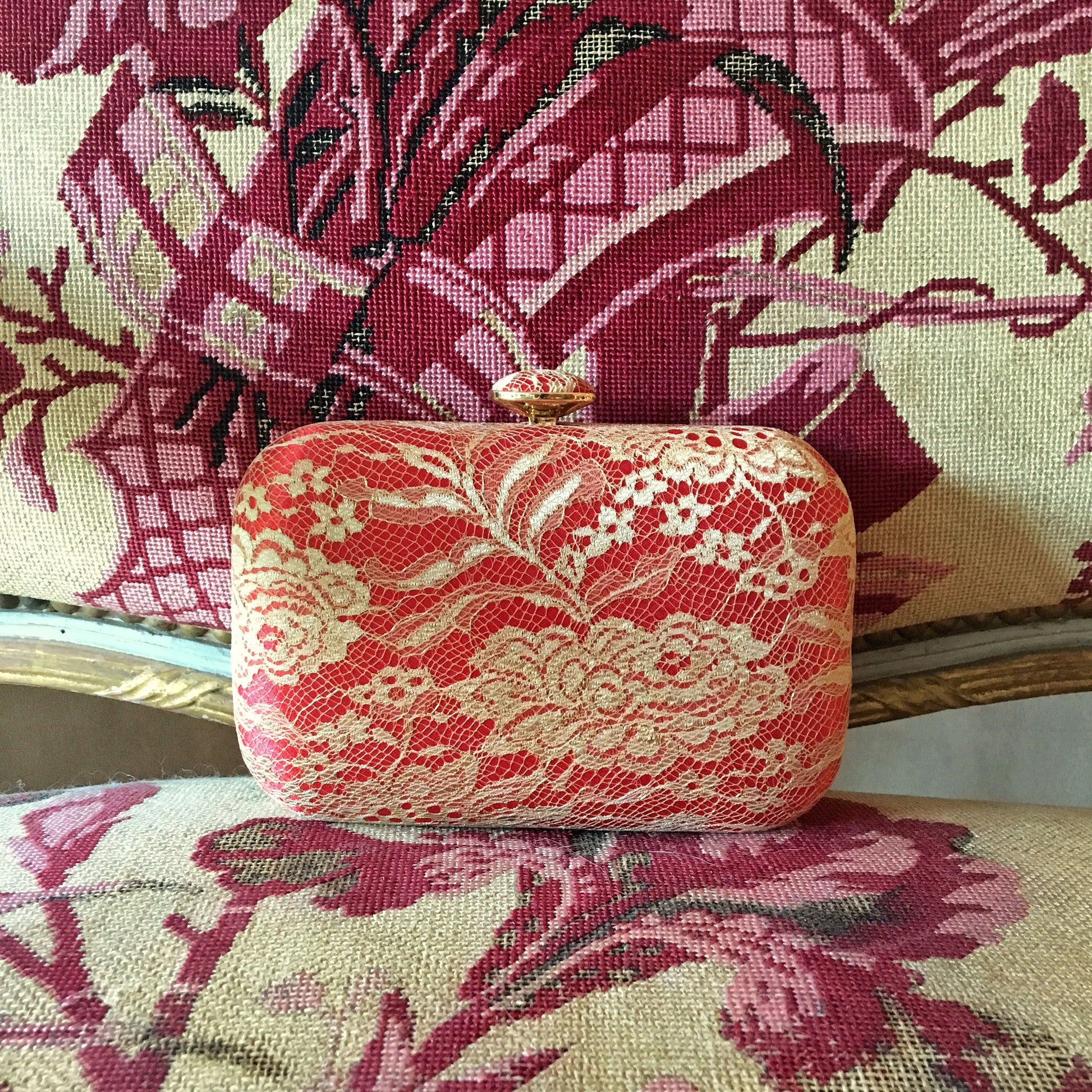 Handmade clutch bags with exquisite fabric coverings. Carry it in the palm of your hand or sling it over your shoulder with the included cross body chain.