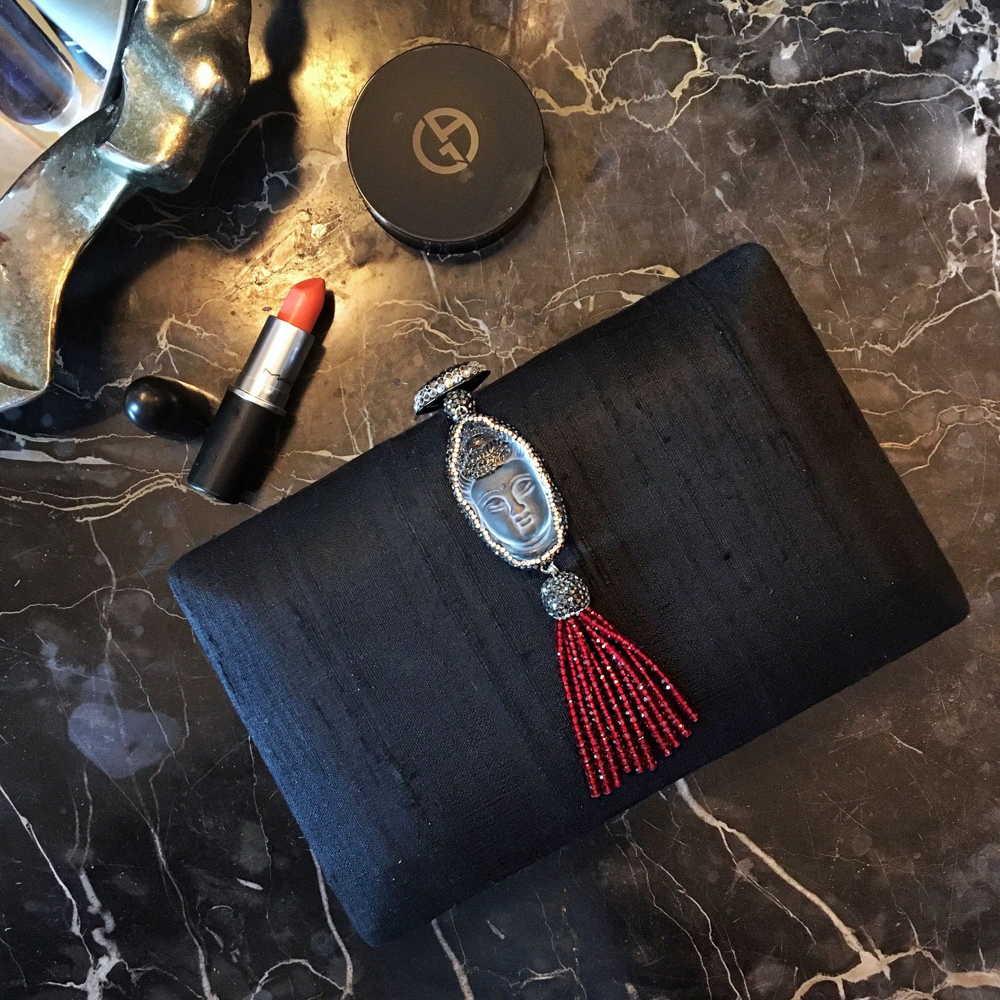 Handmade clutch bags with exquisite fabric coverings. Carry it in the palm of your hand or sling it over your shoulder with the included cross body chain.