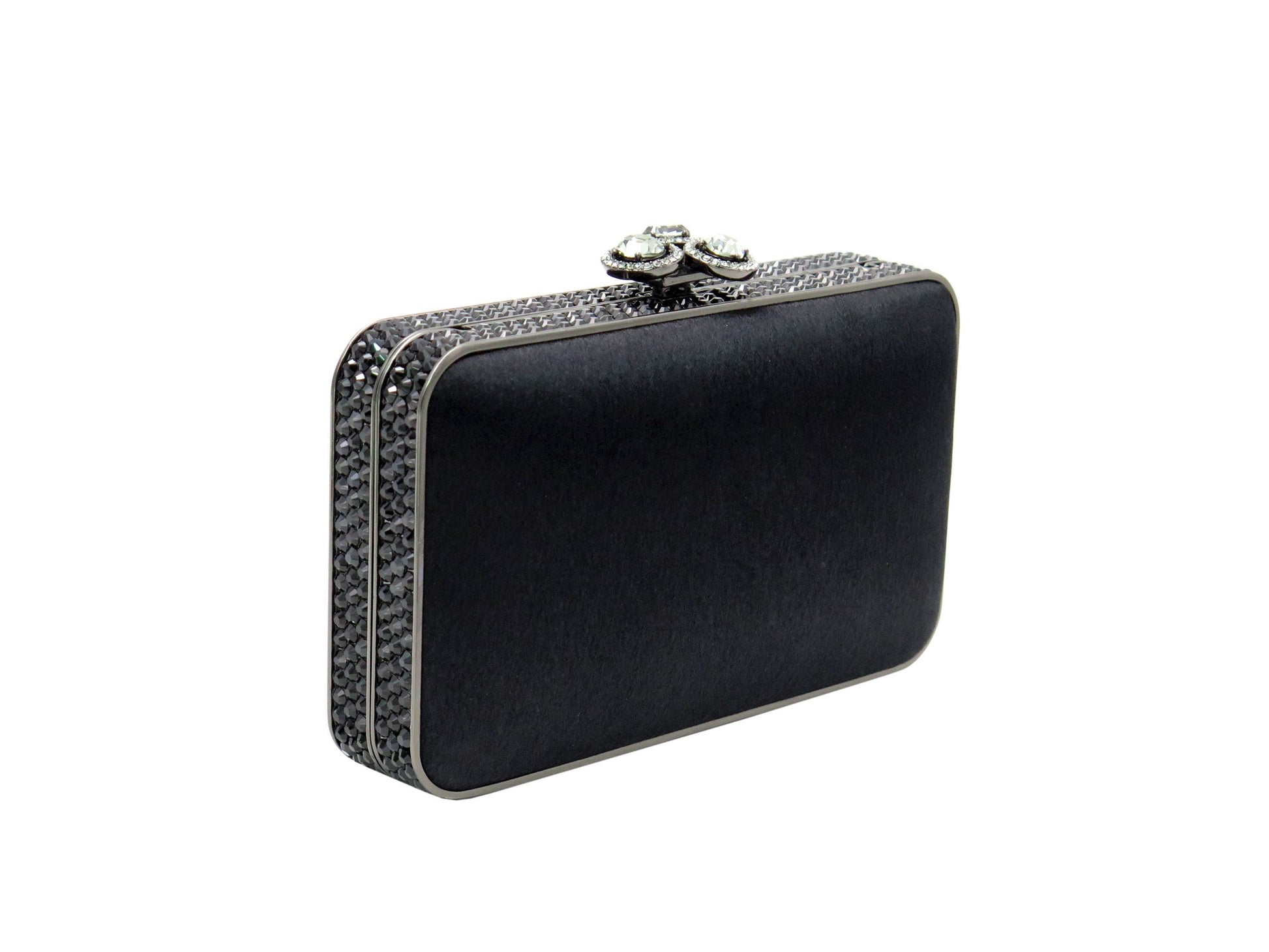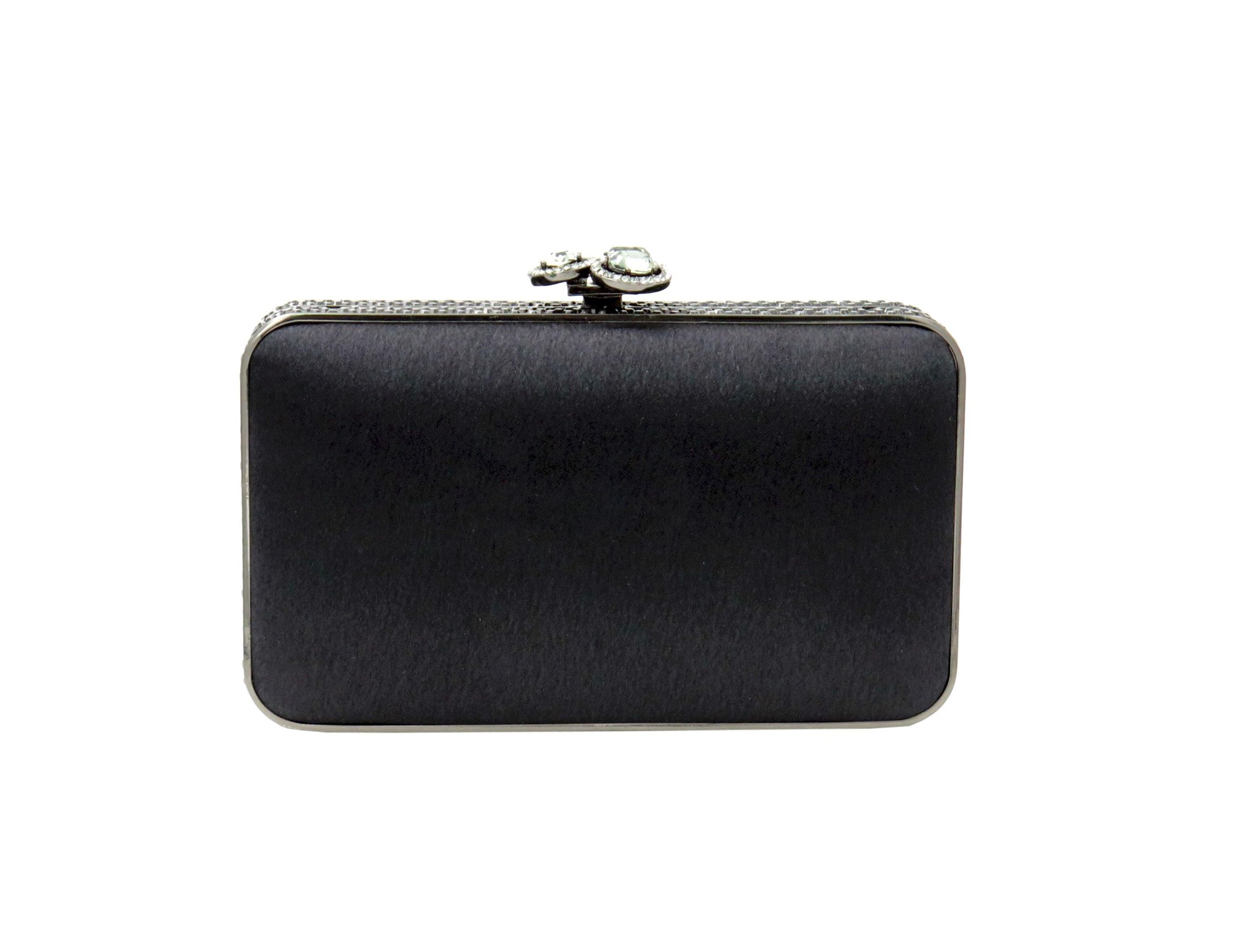 Clutch bags made with Satin fabric and Swarowski elements. Carry it in the palm of your hand or sling it over your shoulder with the included cross body chain.
