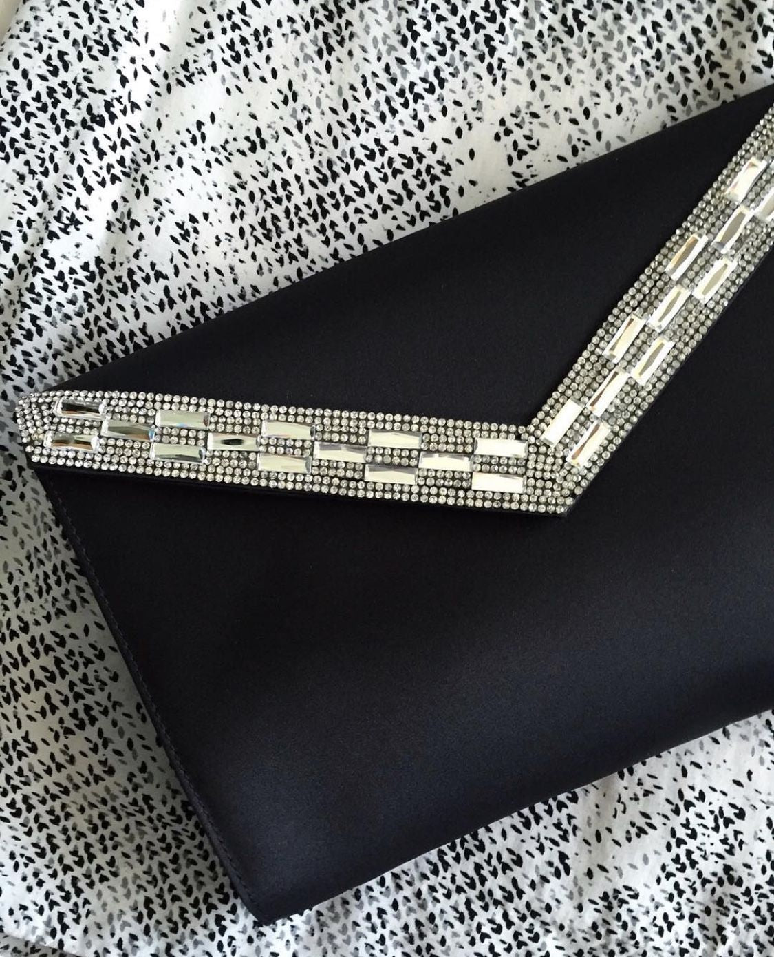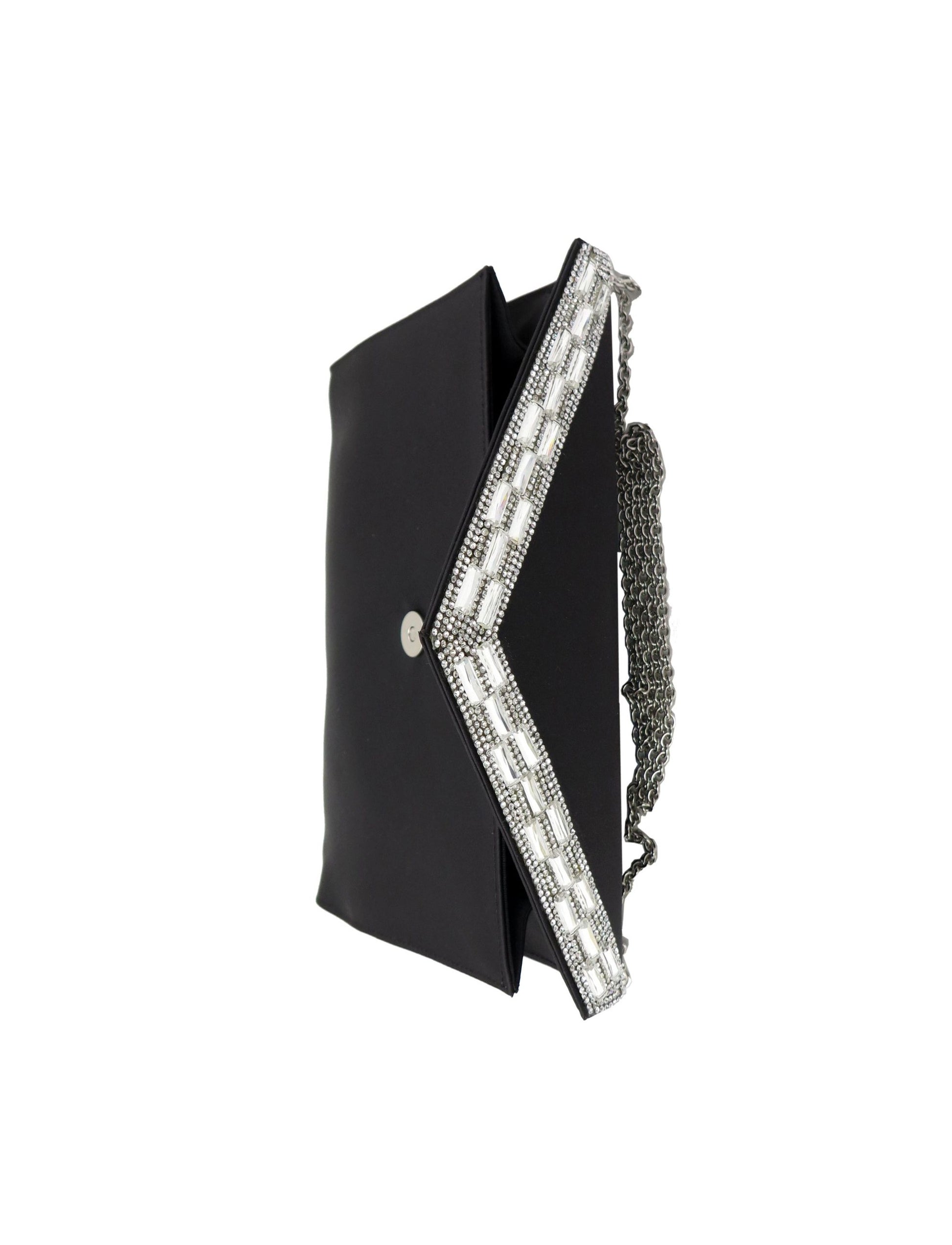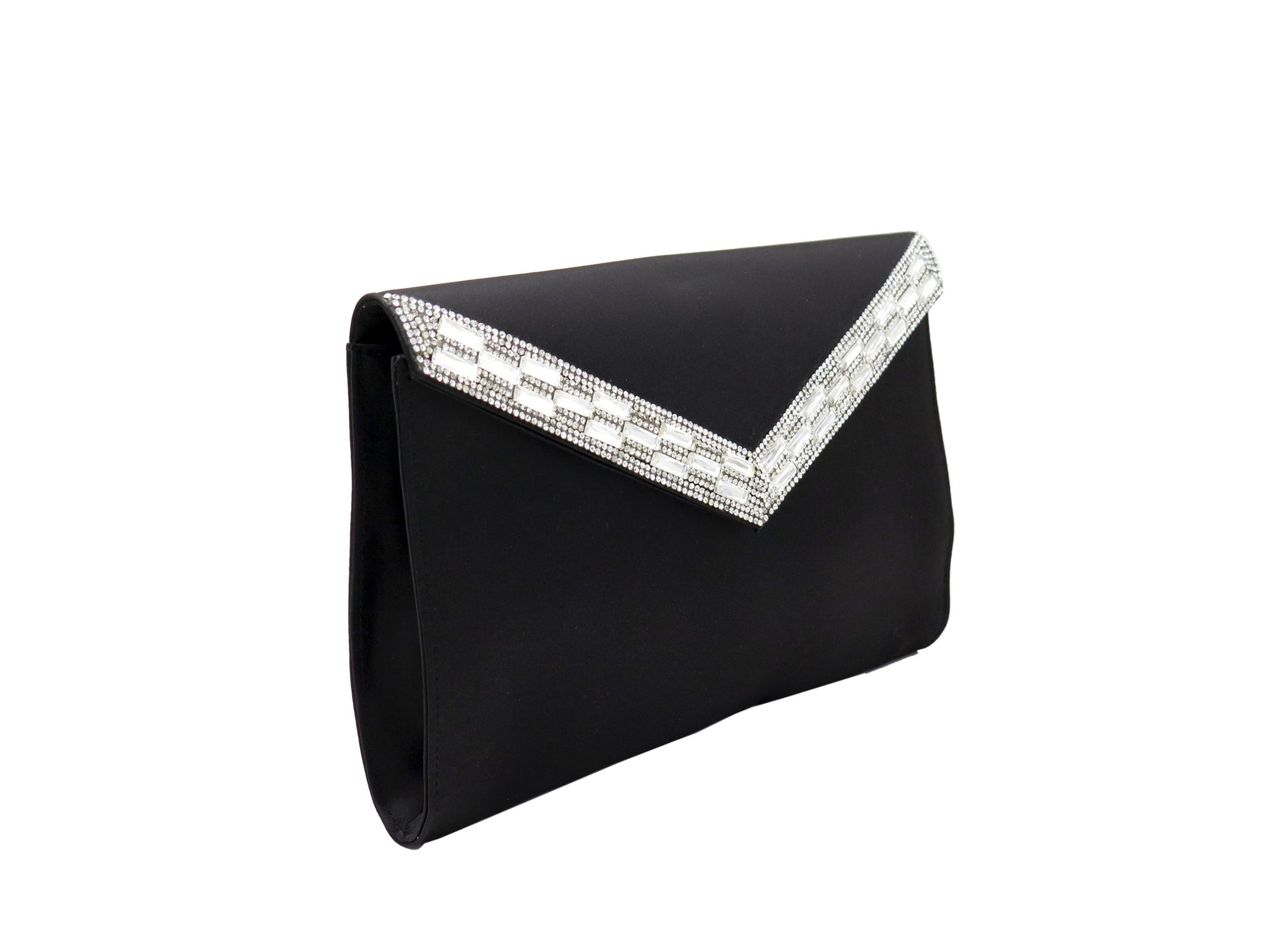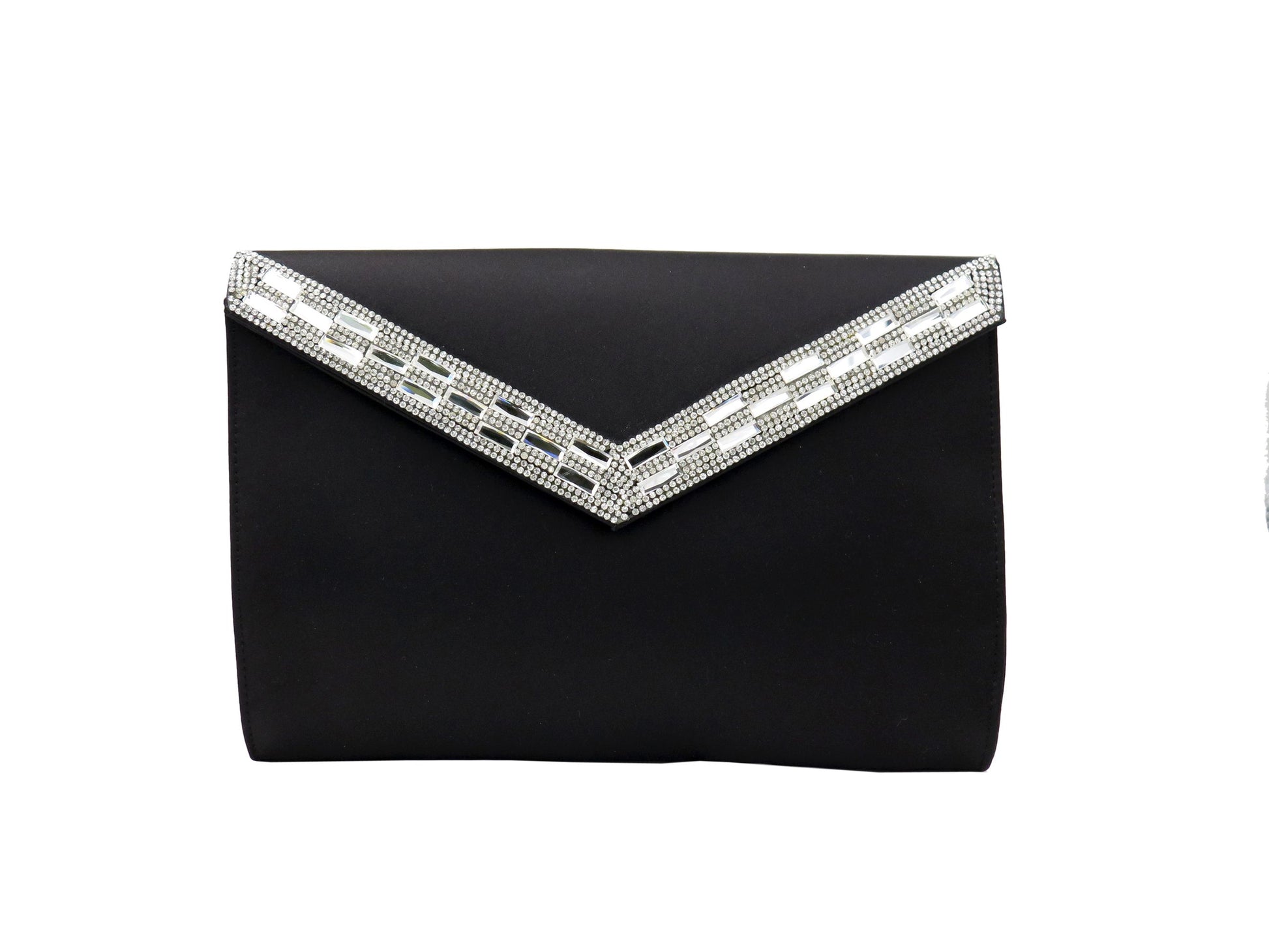 Clutch bags made with Satin fabric and Swarowski elements. Carry it in the palm of your hand or sling it over your shoulder with the included cross body chain.