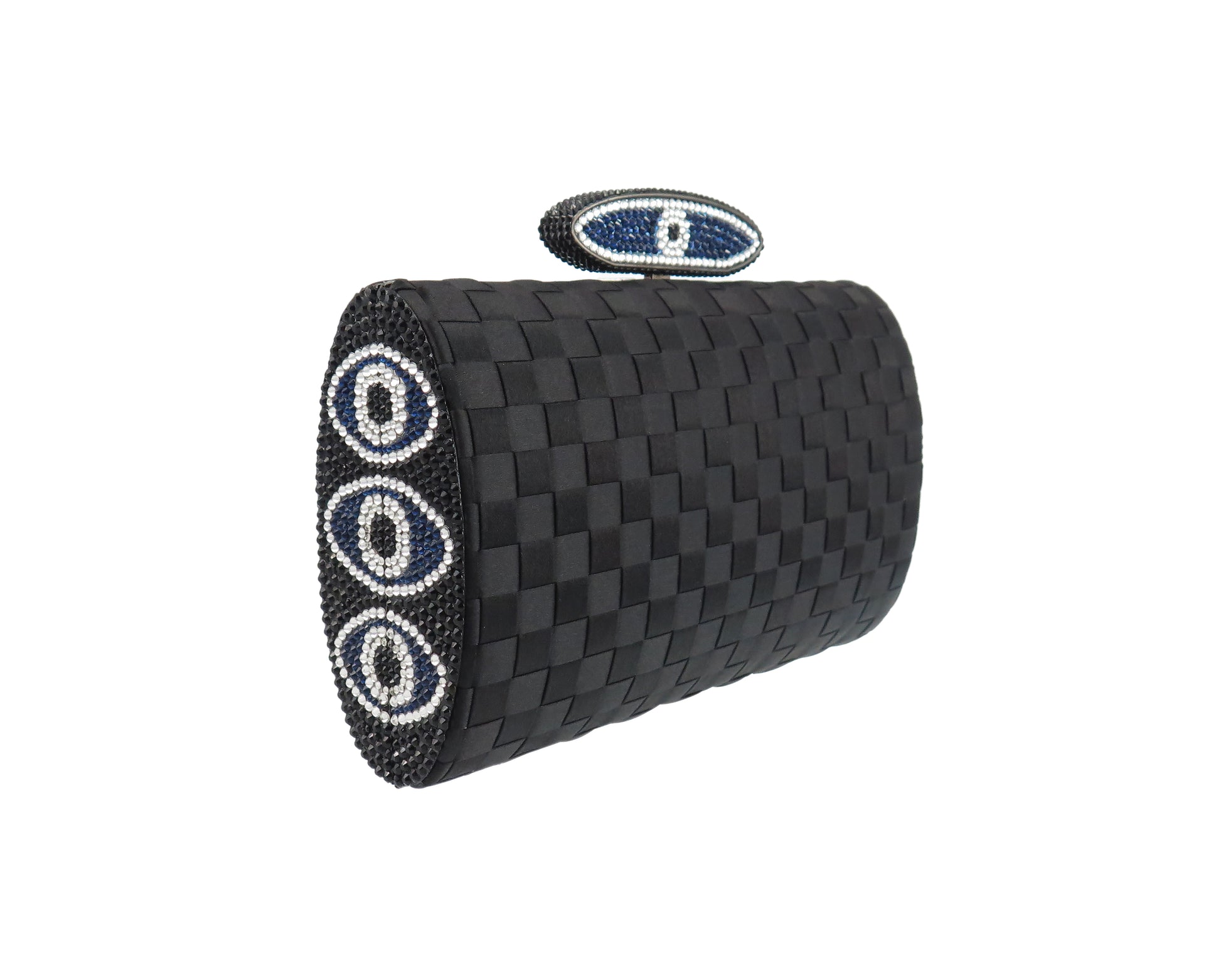 Clutch bags made with Satin fabric and Swarowski elements. Carry it in the palm of your hand or sling it over your shoulder with the included cross body chain.