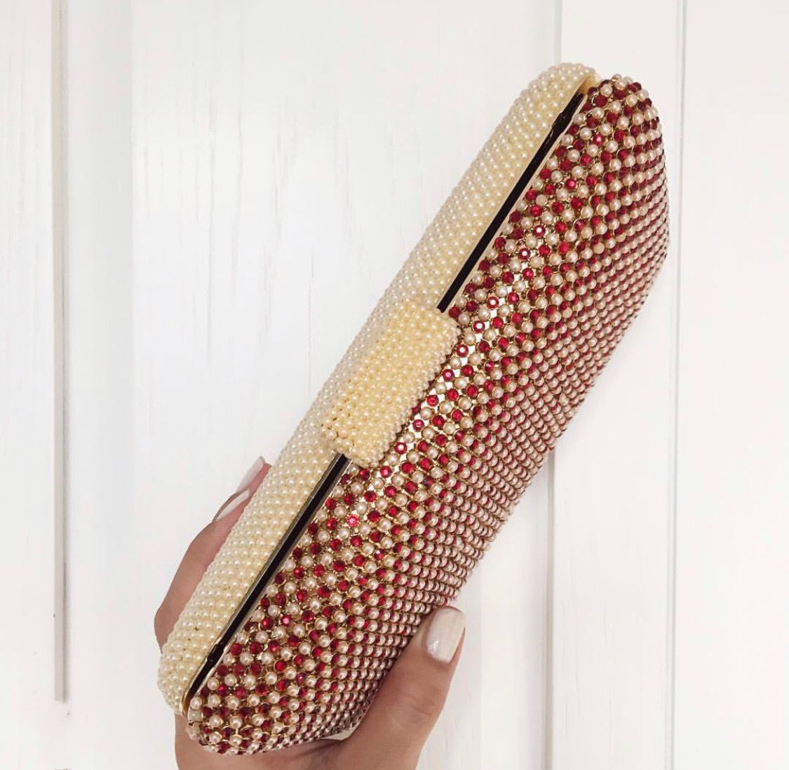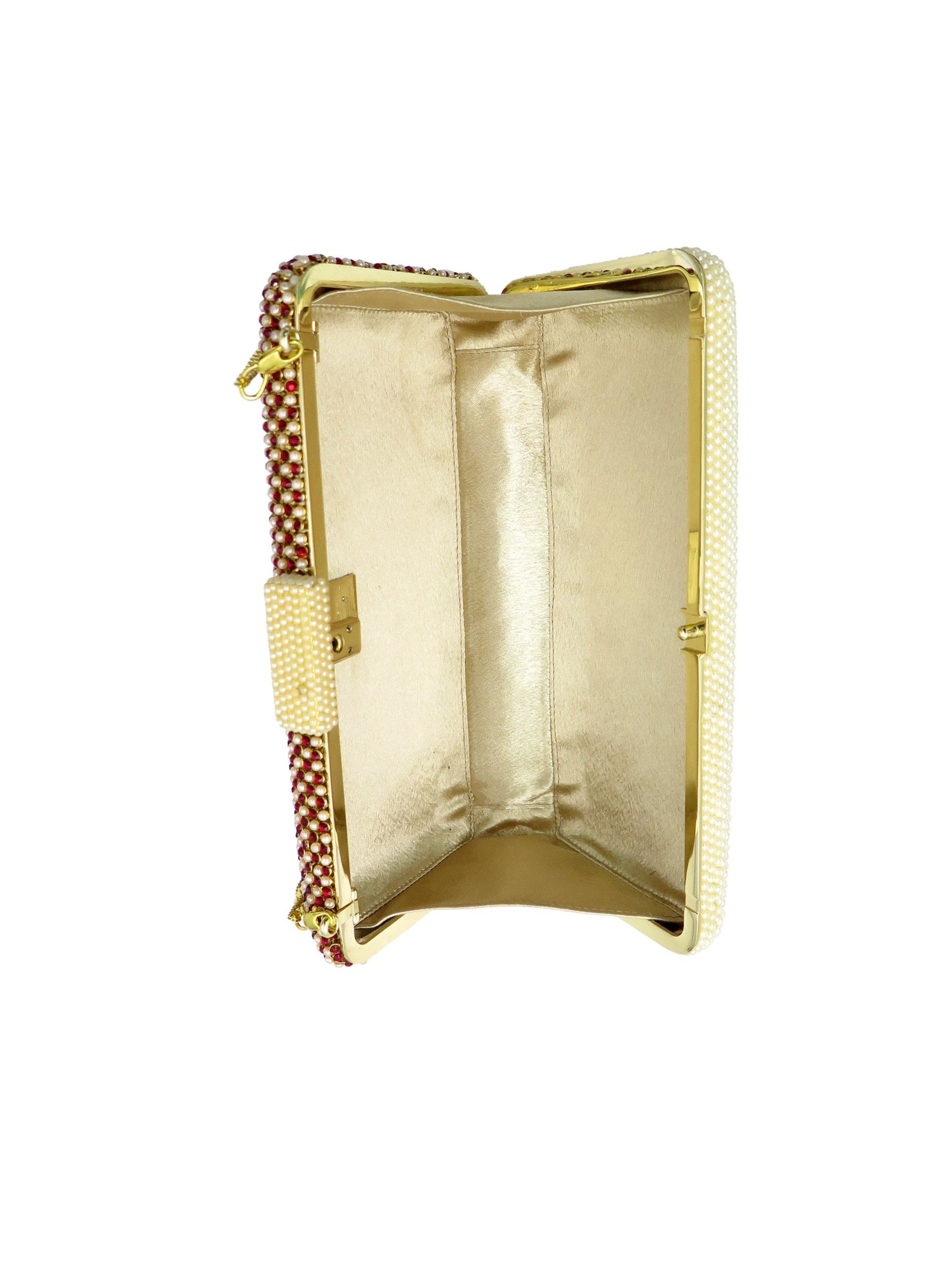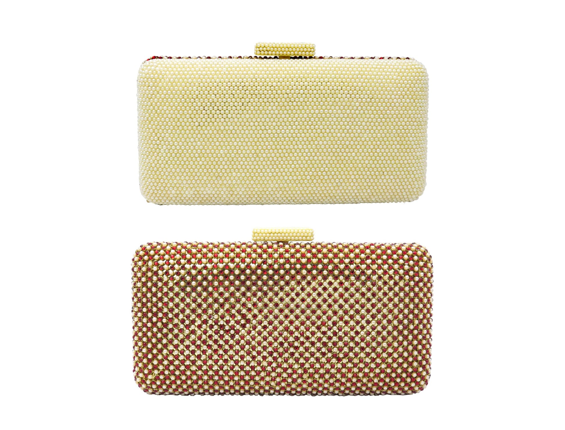 Clutch bags embellished with Pearls and Swarowski elements. Carry it in the palm of your hand or sling it over your shoulder with the included cross body chain.