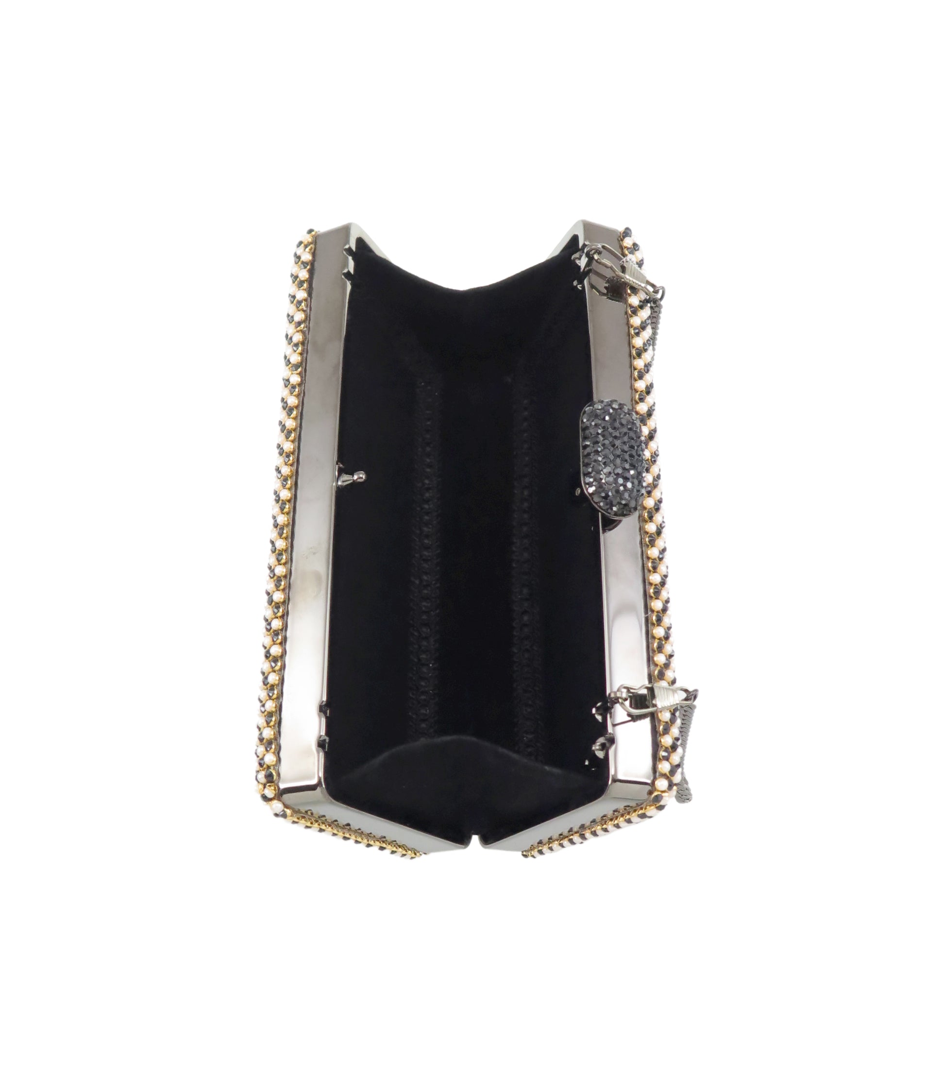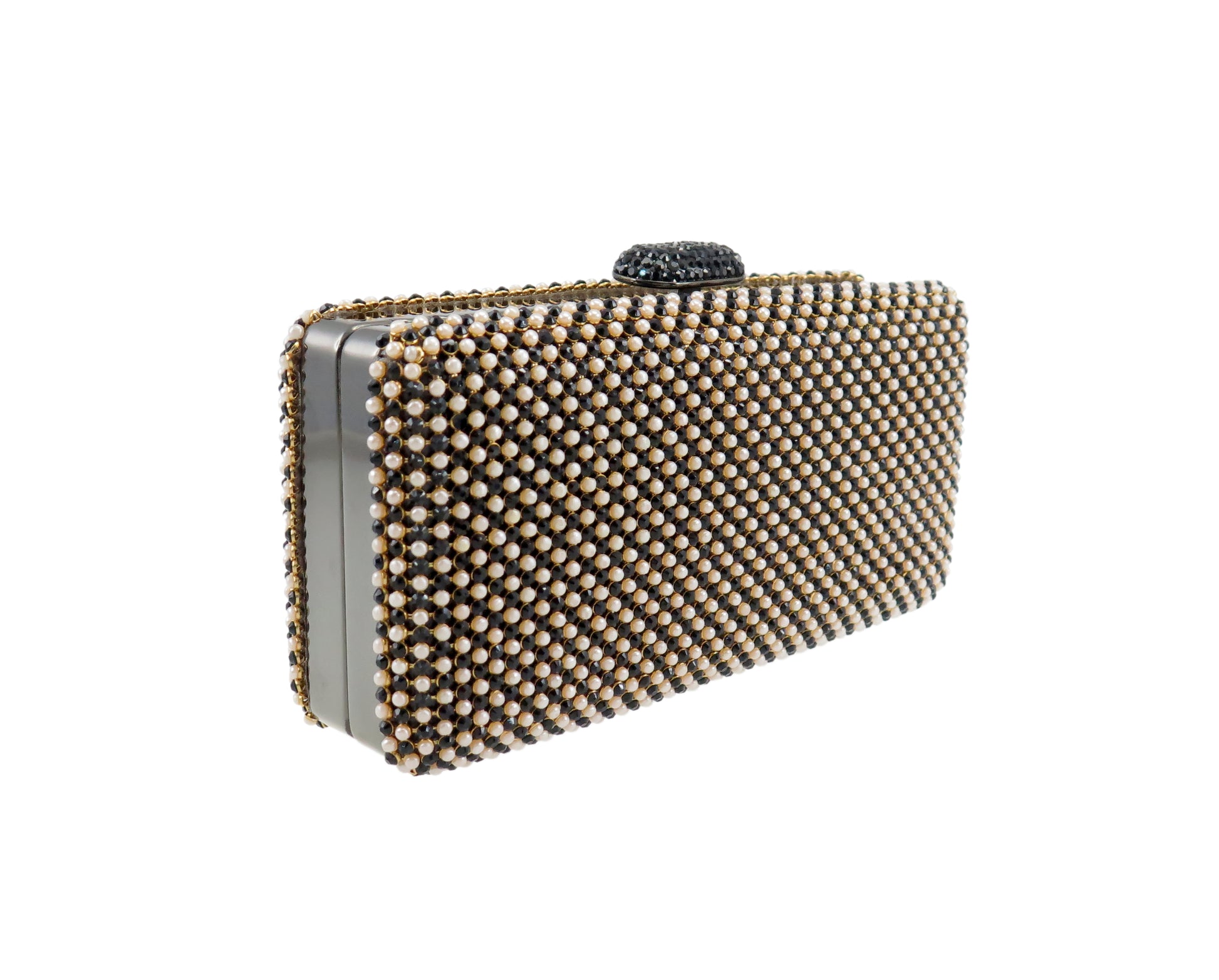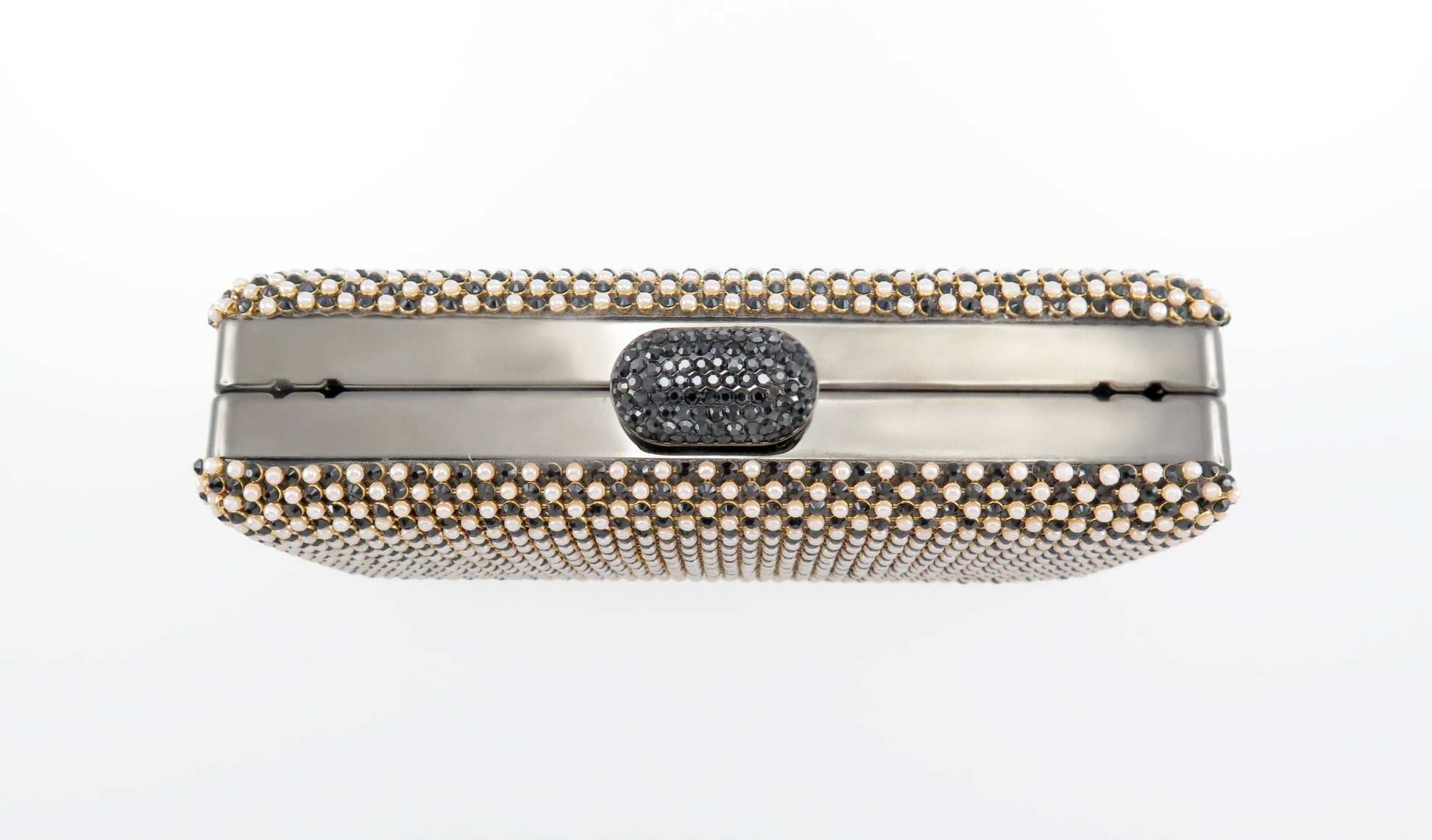 Clutch bags embellished with Pearls and Swarowski elements. Carry it in the palm of your hand or sling it over your shoulder with the included cross body chain.