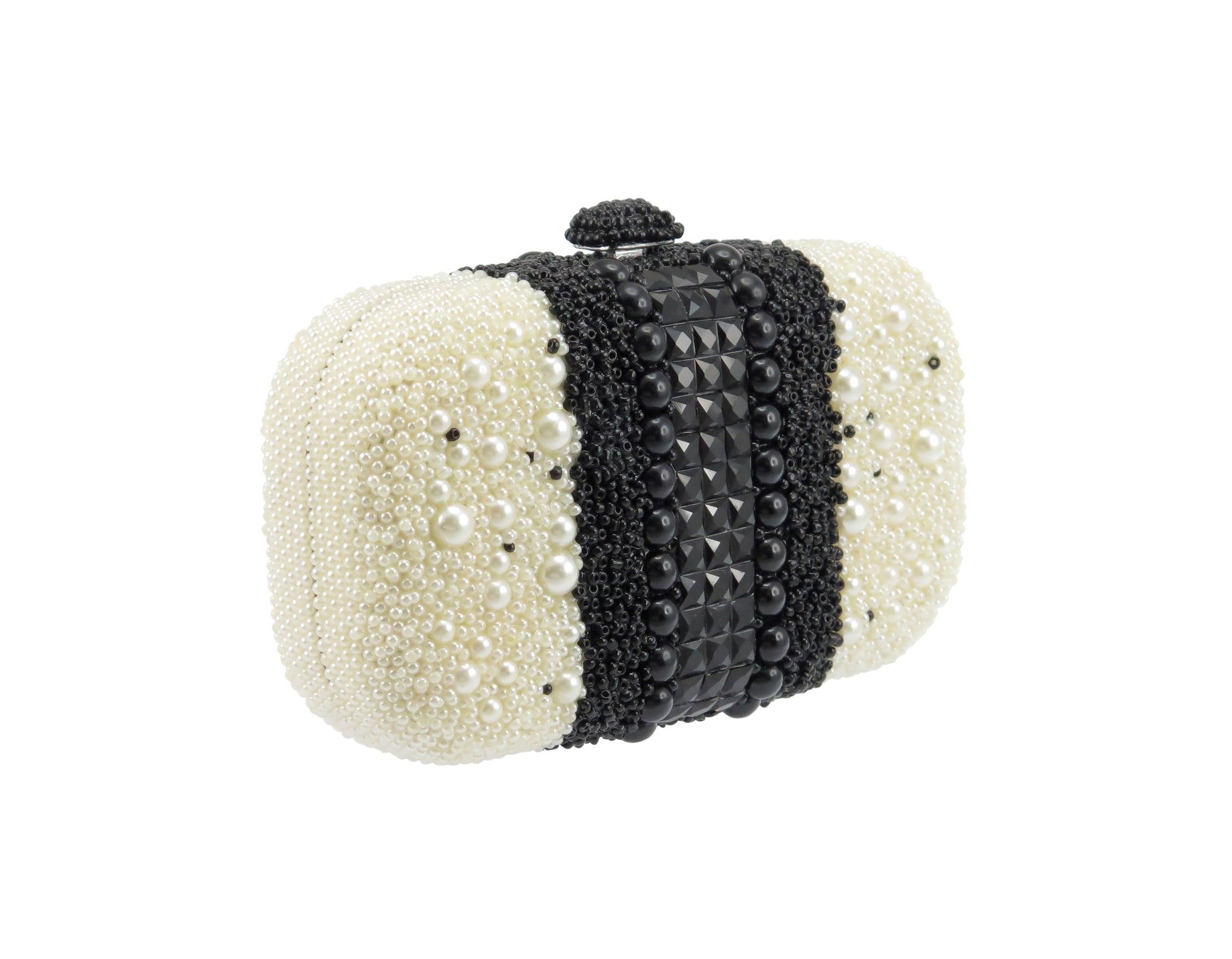 Clutch bags embellished with Pearls and Swarowski elements. Carry it in the palm of your hand or sling it over your shoulder with the included cross body chain.