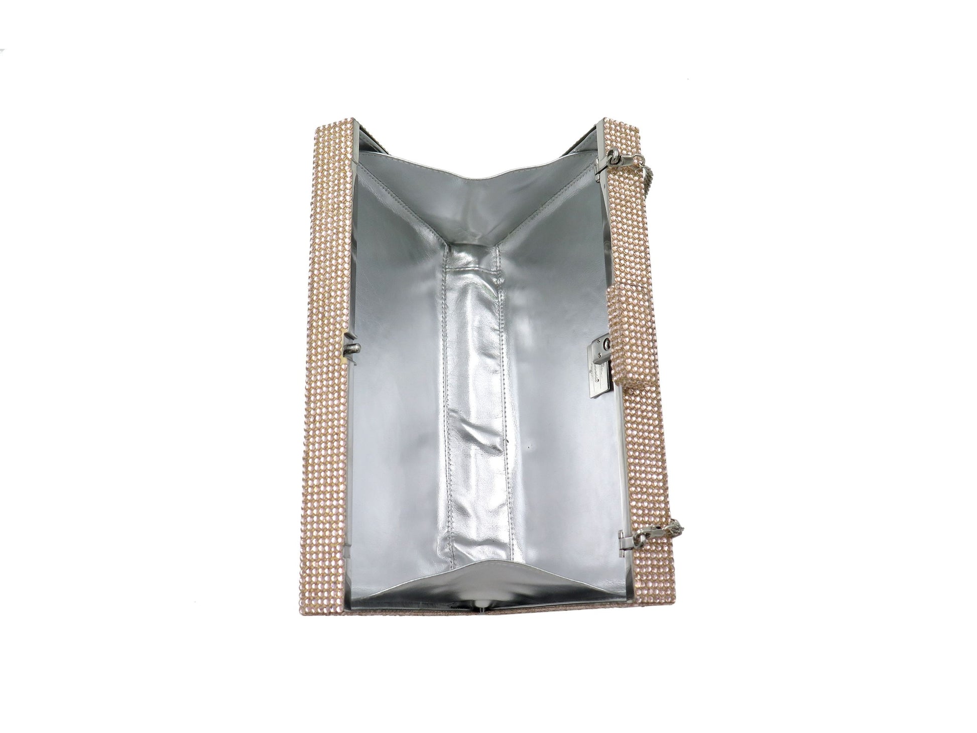 Clutch bags encrusted with Swarovski crystals. Carry it in the palm of your hand or sling it over your shoulder with the included cross body chain.
