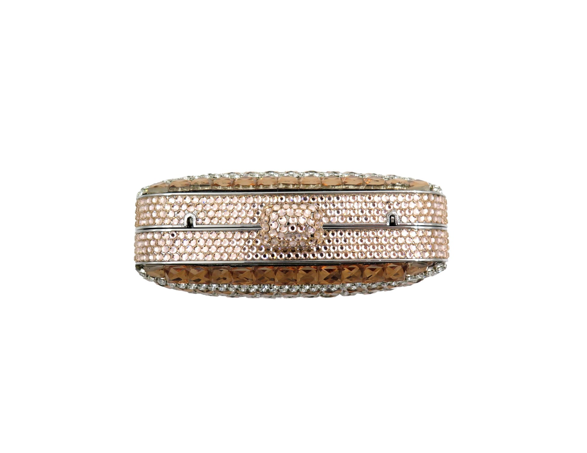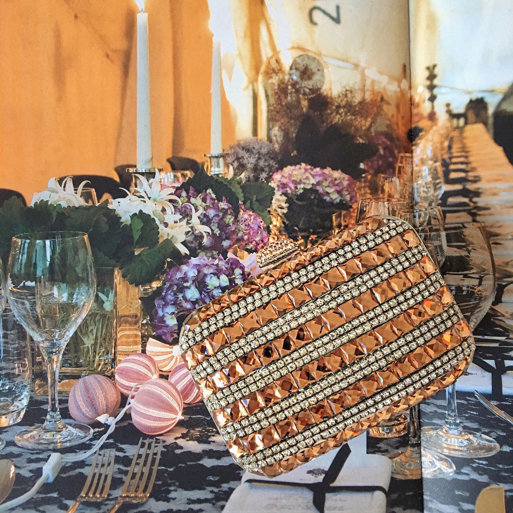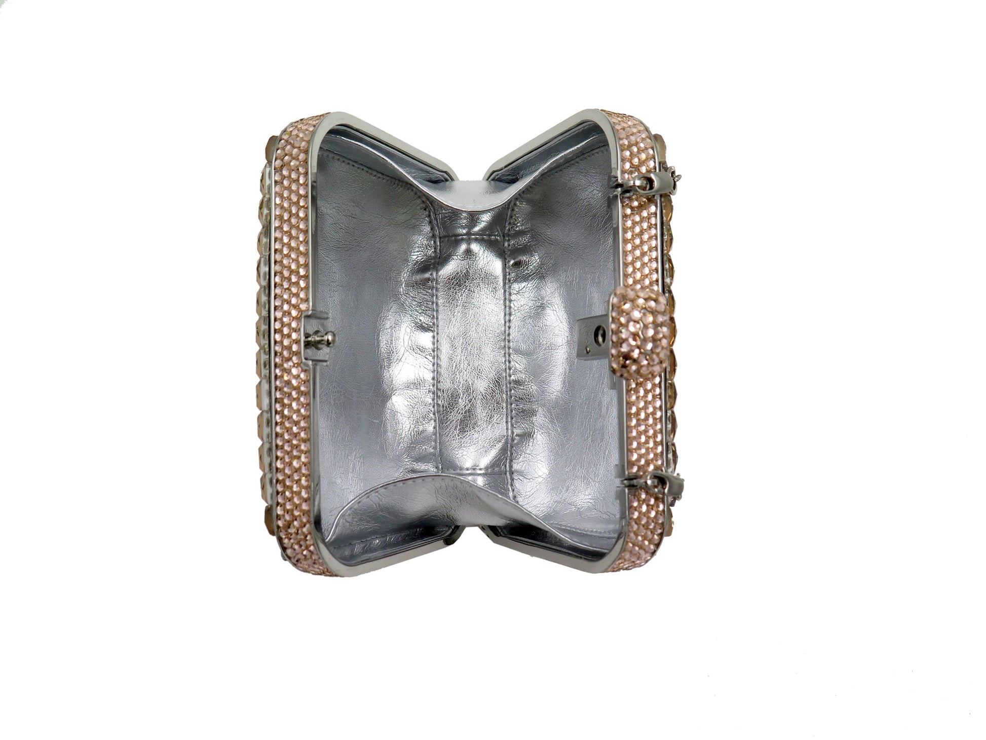 Clutch bags encrusted with Swarovski crystals. Carry it in the palm of your hand or sling it over your shoulder with the included cross body chain.