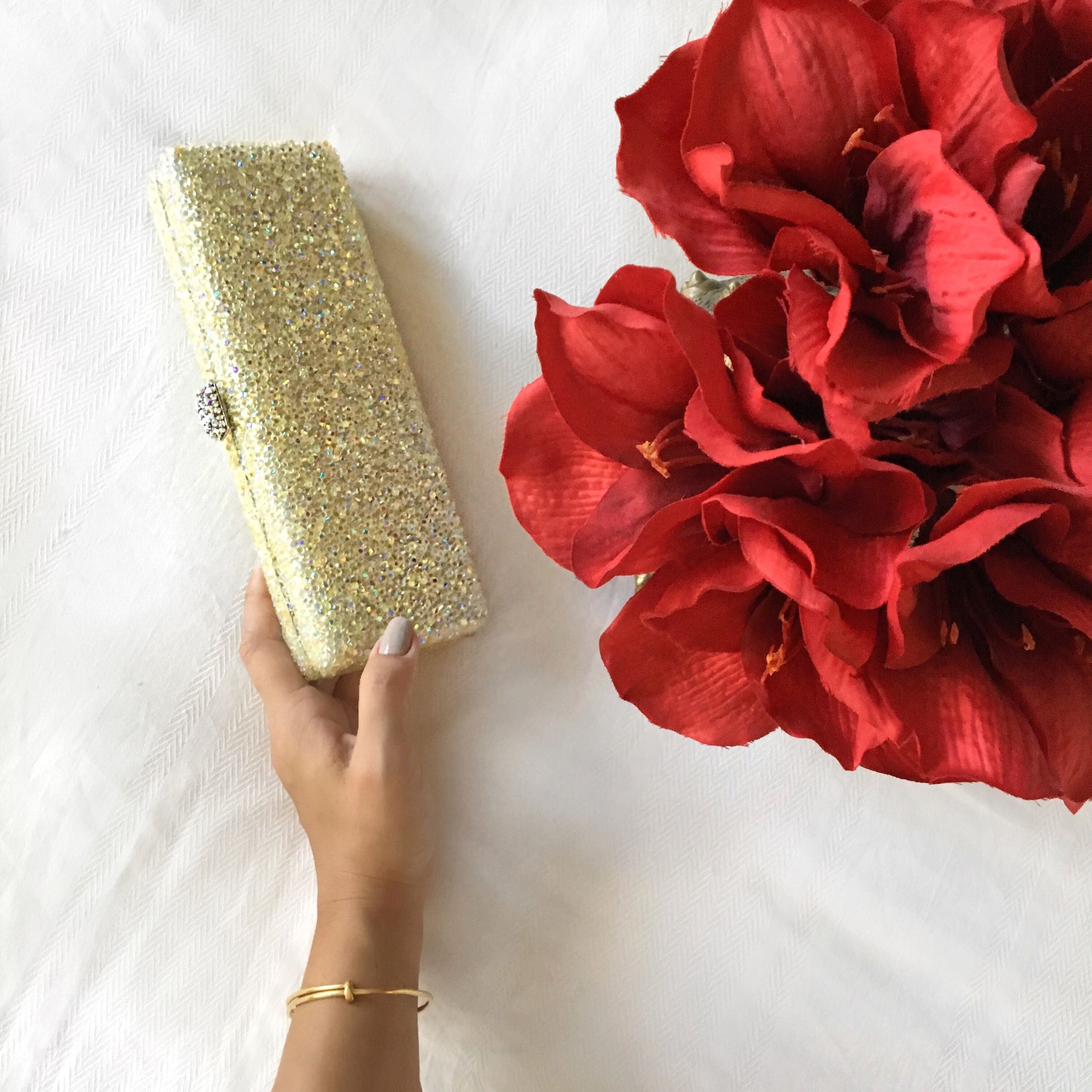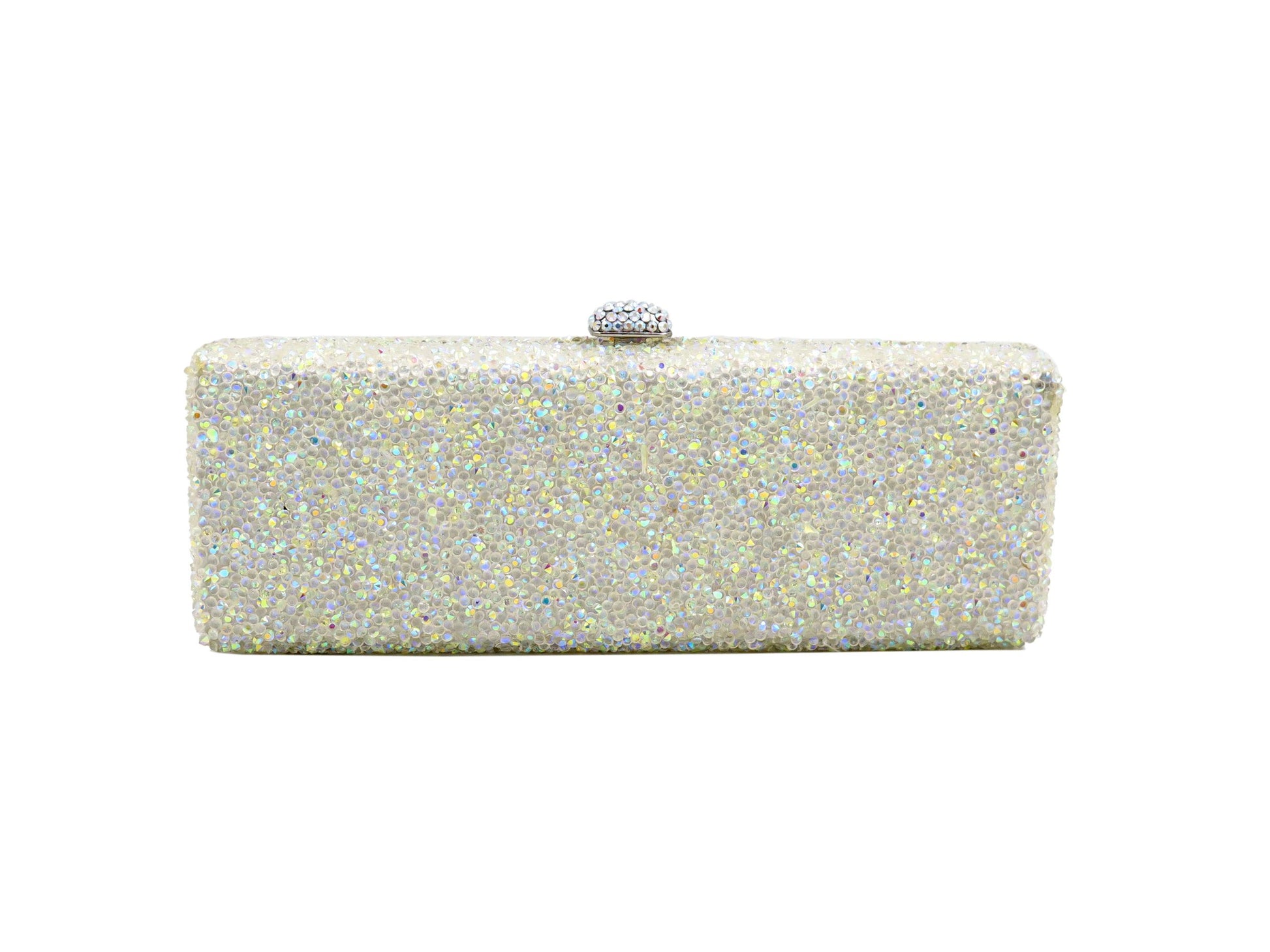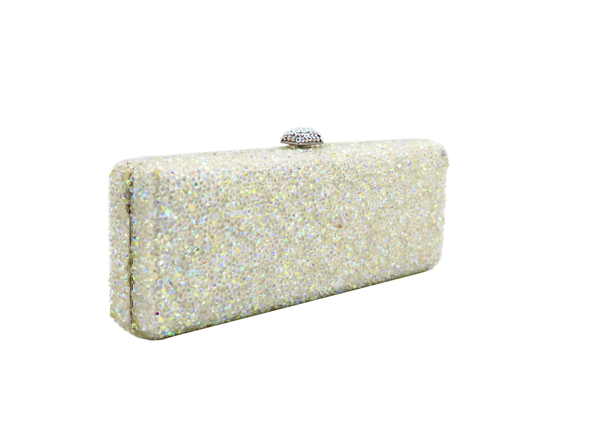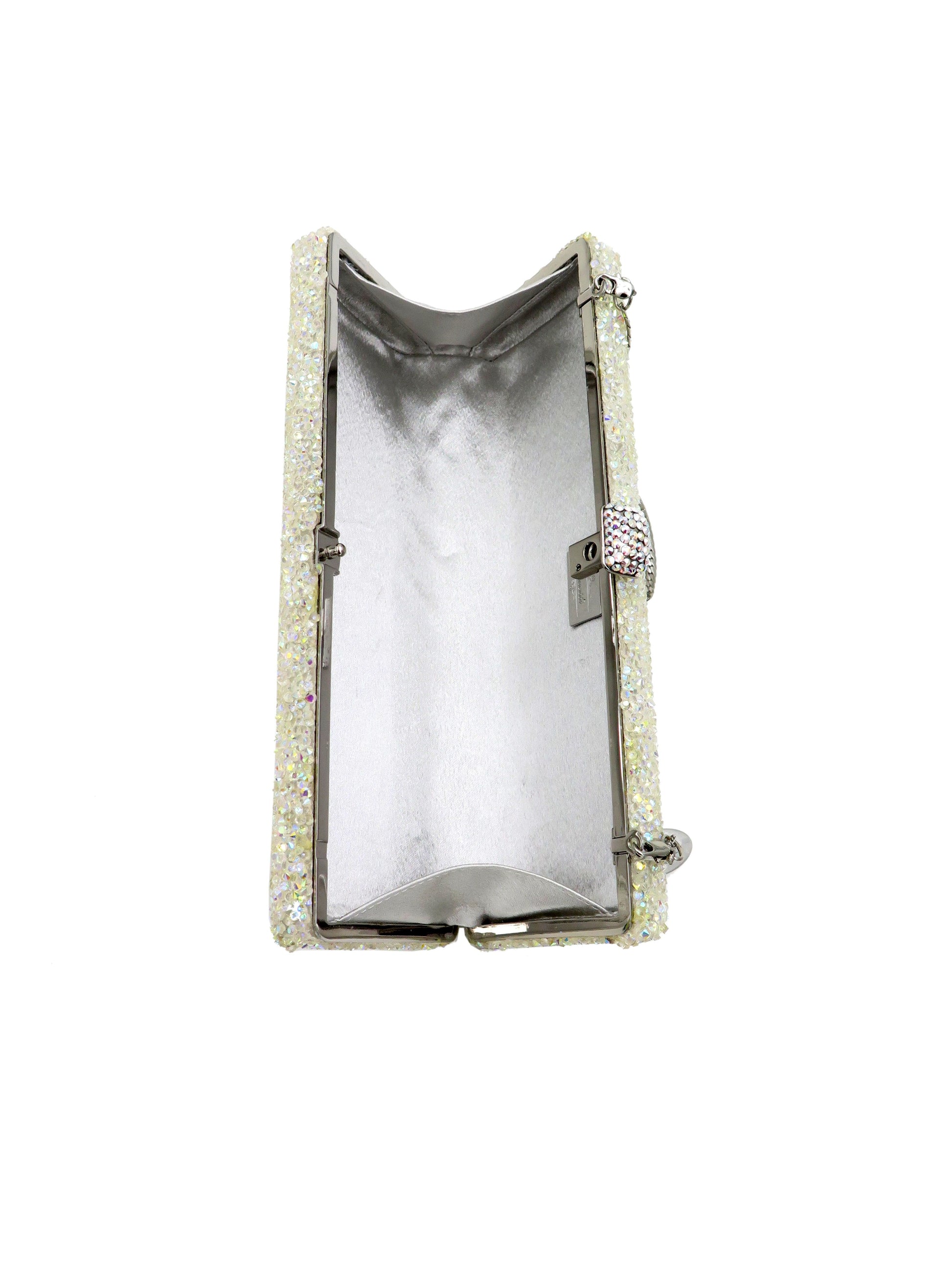 Clutch bags encrusted with Swarovski crystals. Carry it in the palm of your hand or sling it over your shoulder with the included cross body chain.
