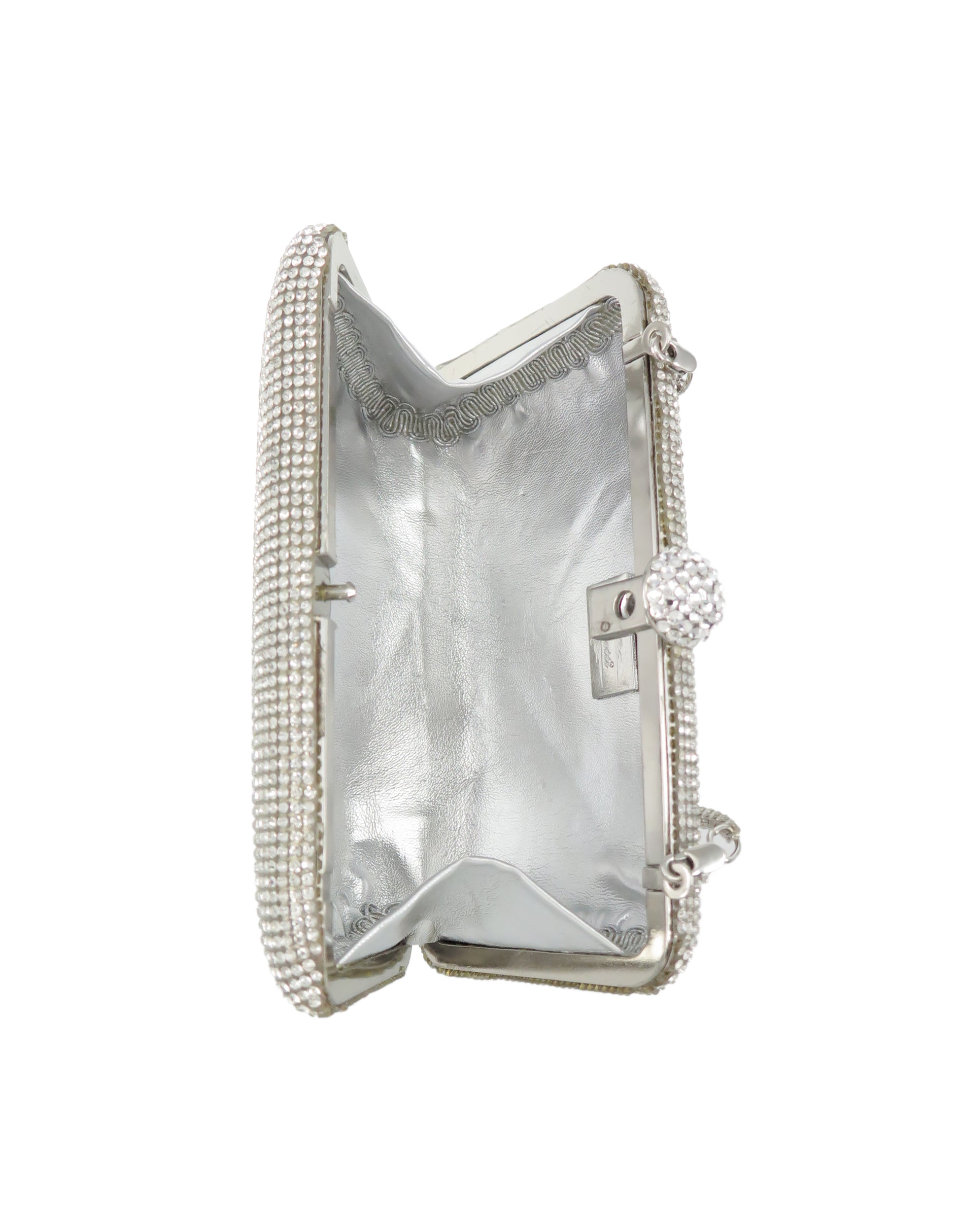 Clutch bags encrusted with Swarovski crystals. Carry it in the palm of your hand or sling it over your shoulder with the included cross body chain.