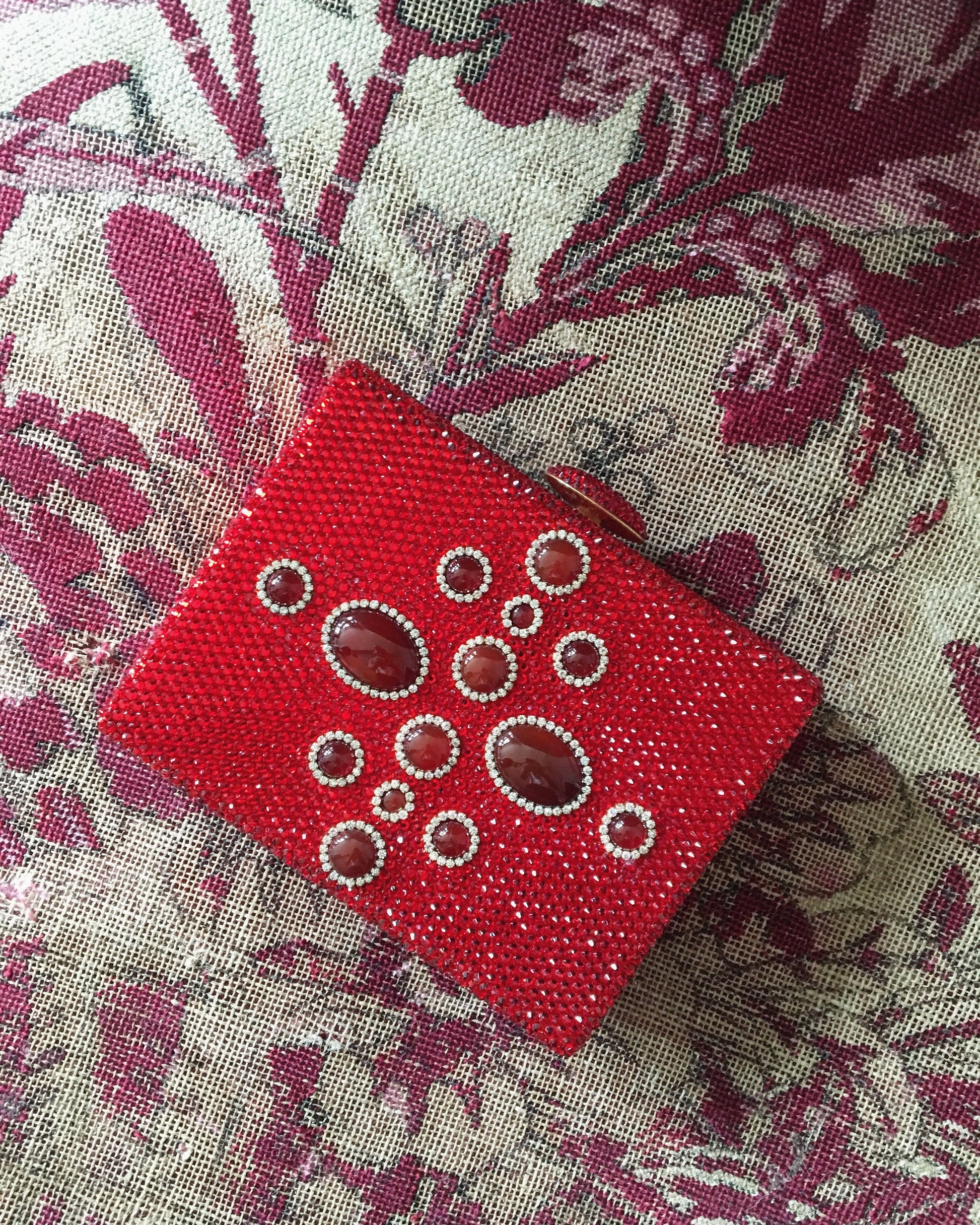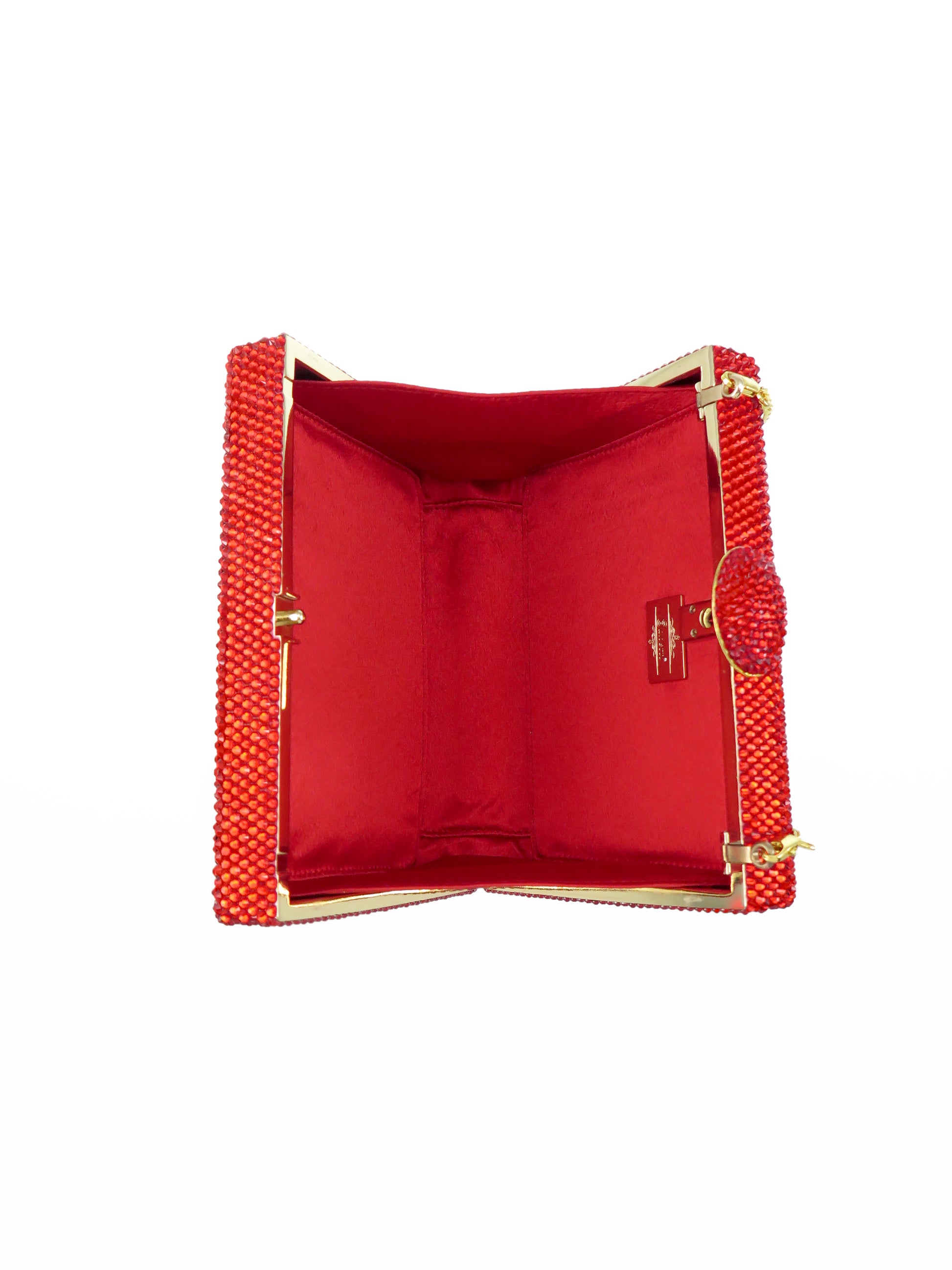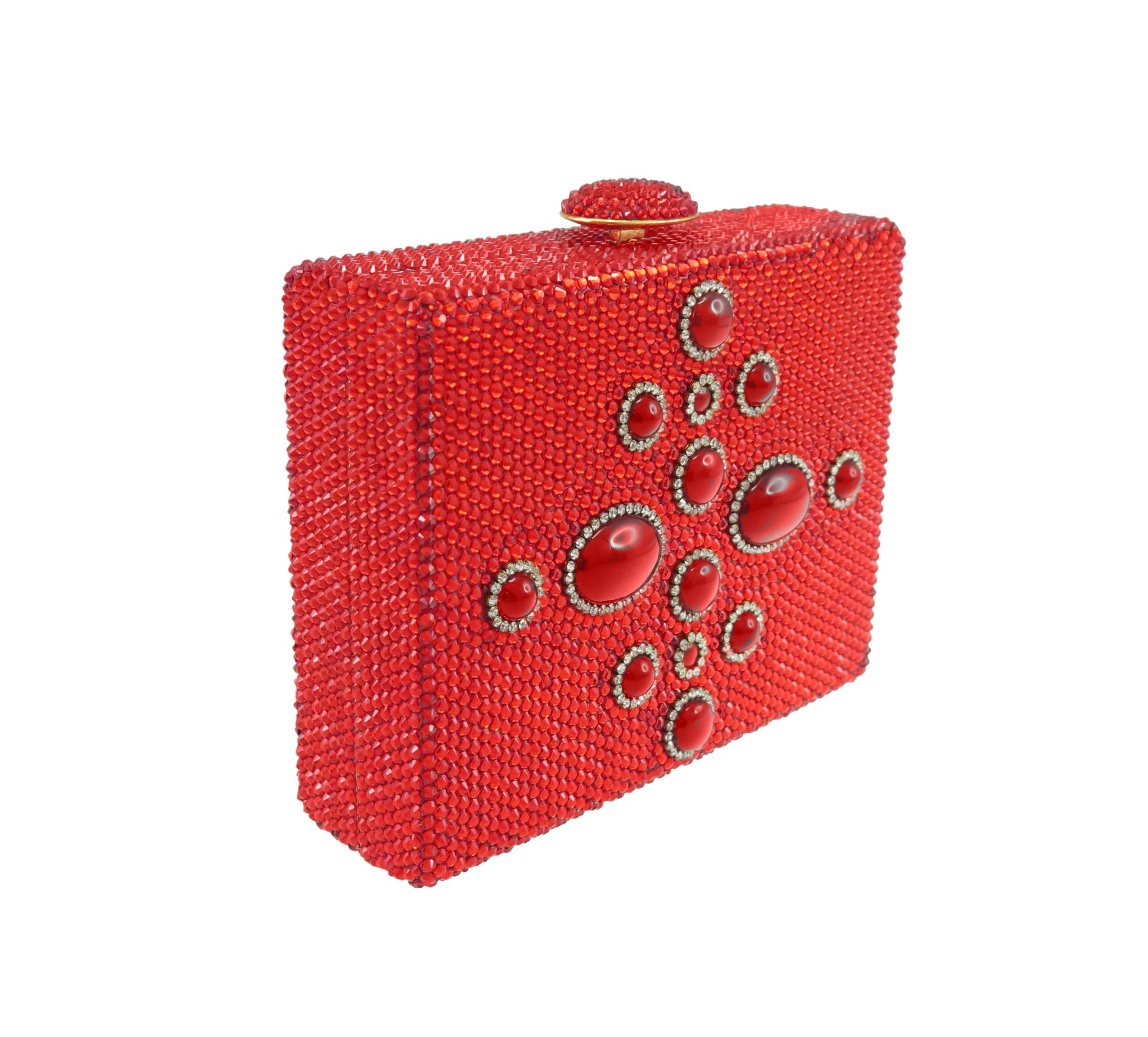 Clutch bags encrusted with Swarovski crystals. Carry it in the palm of your hand or sling it over your shoulder with the included cross body chain.