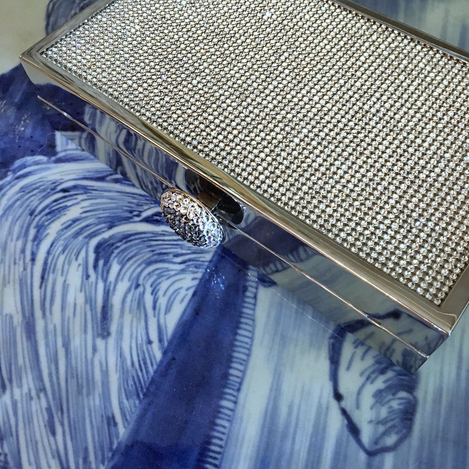 Clutch bags encrusted with Swarovski crystals. Carry it in the palm of your hand or sling it over your shoulder with the included cross body chain.