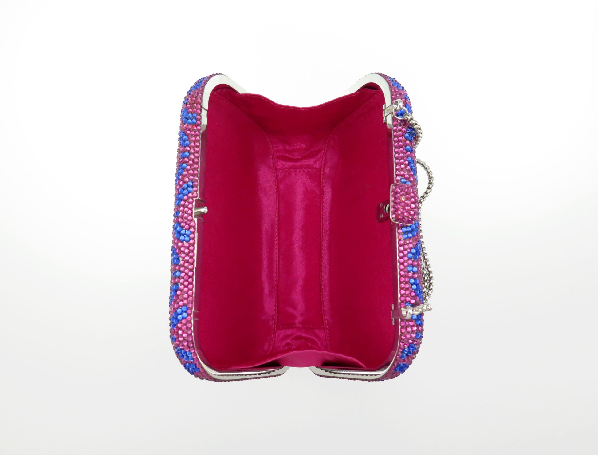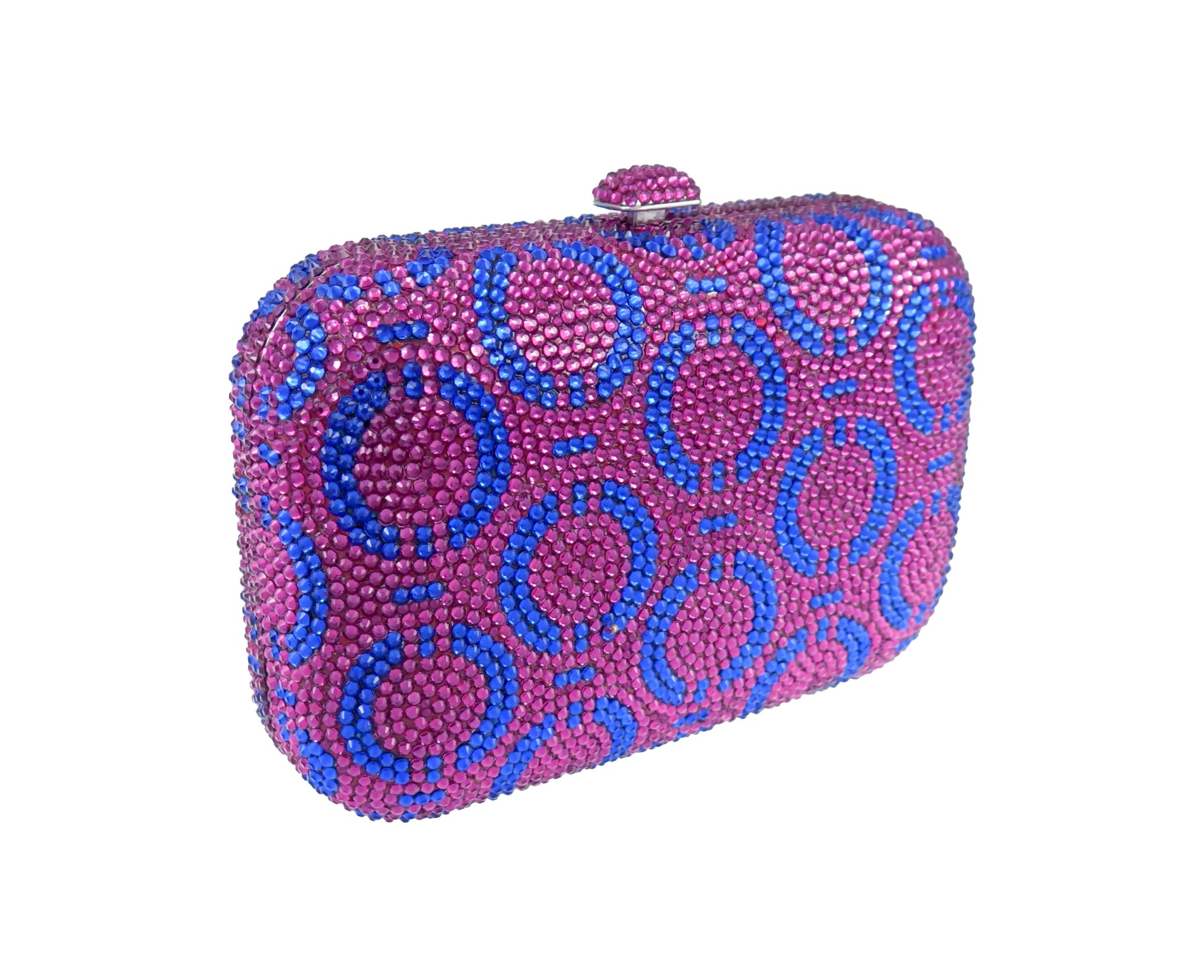 Clutch bags encrusted with Crystals. Carry it in the palm of your hand or sling it over your shoulder with the included cross body chain.