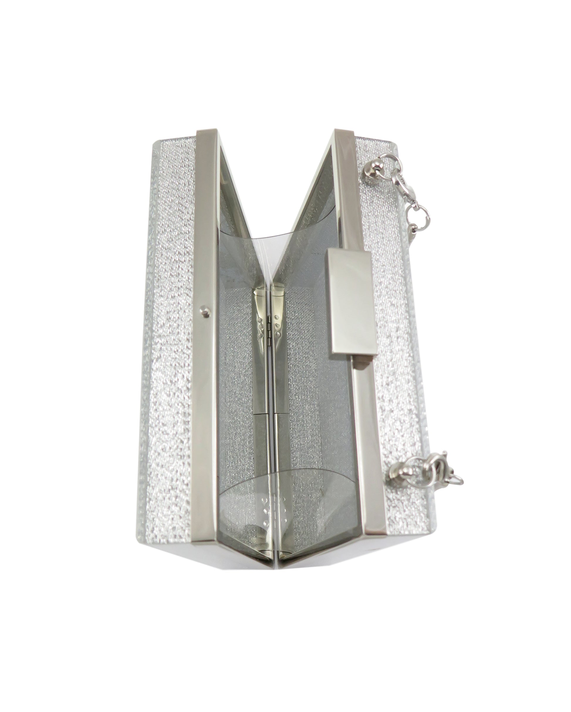 Clutch bags embellished with acrylic and made with the finest synthetic and natural materials. Carry it in the palm of your hand or sling it over your shoulder with the included cross body chain.